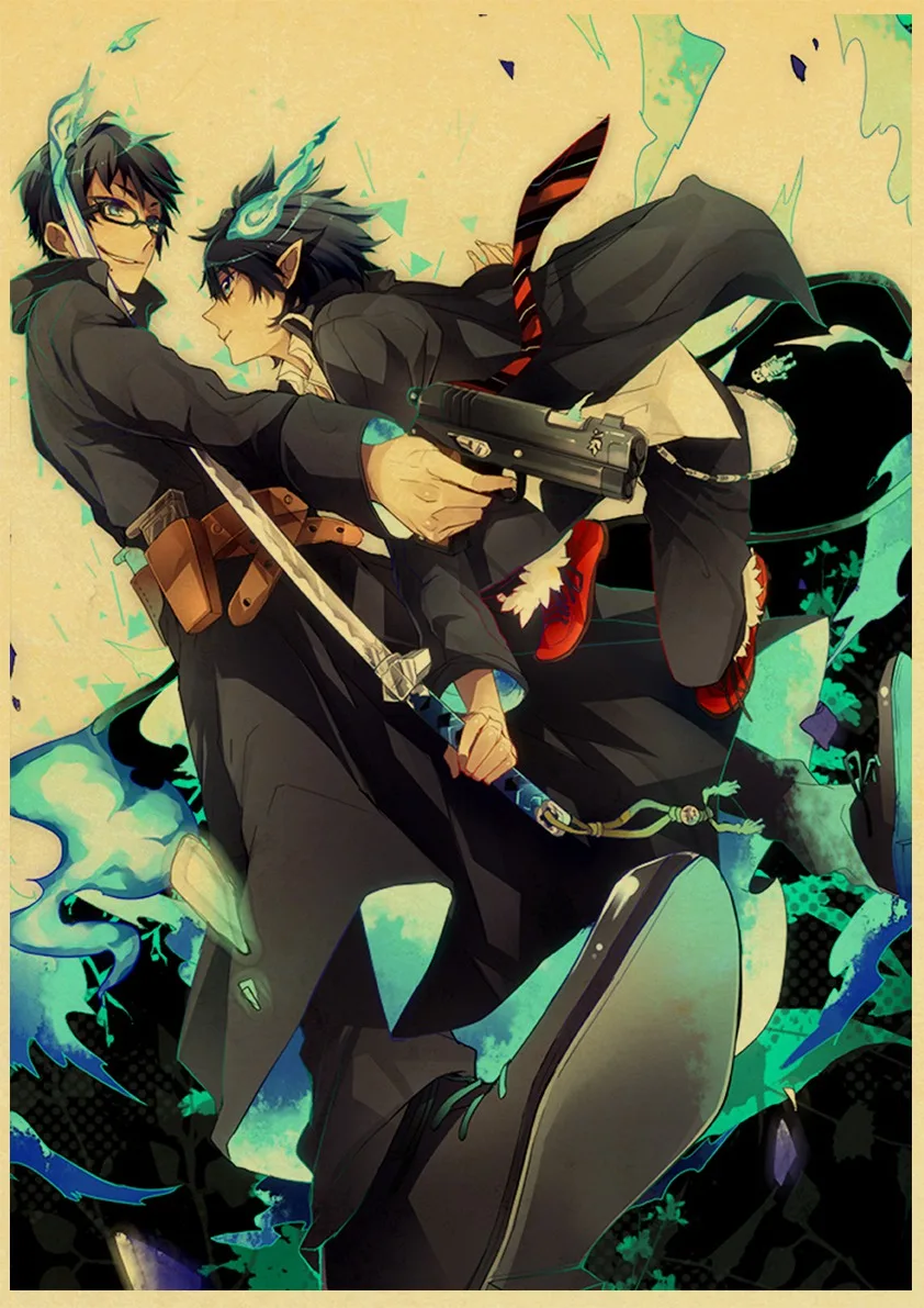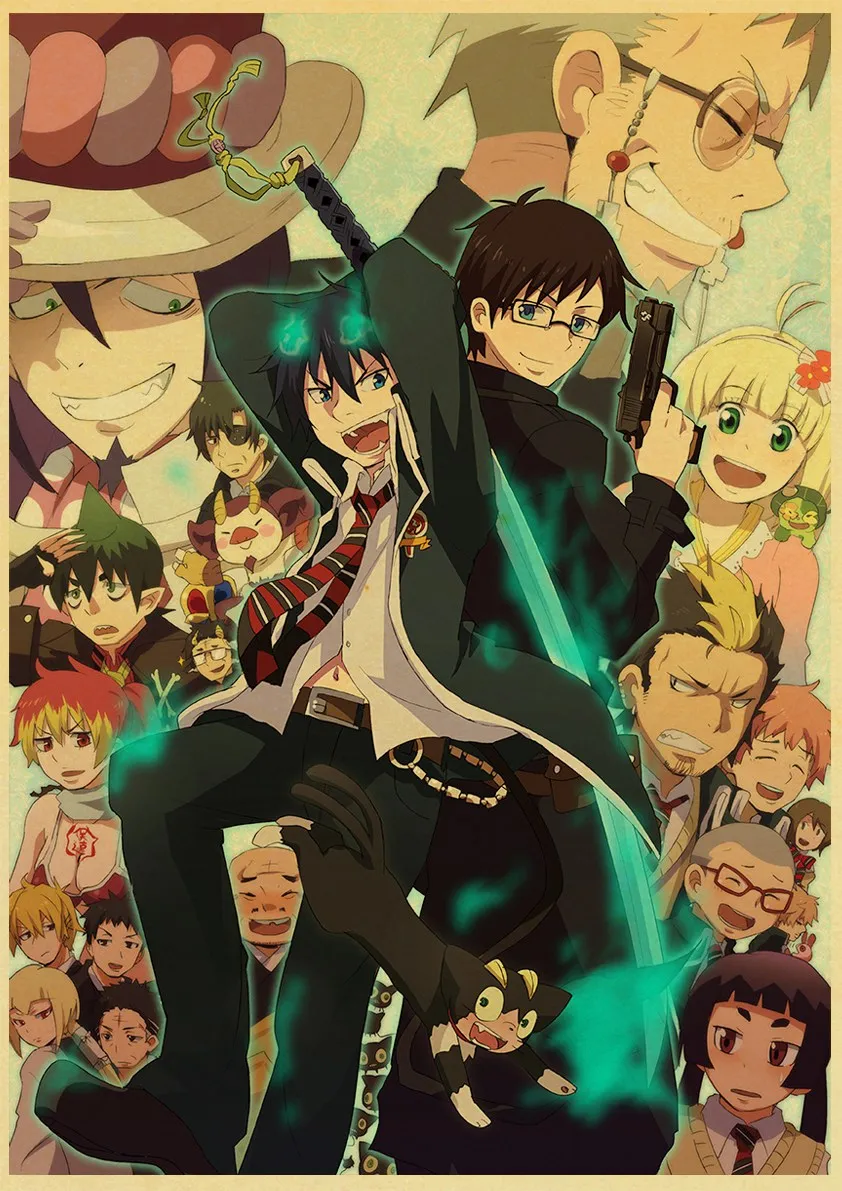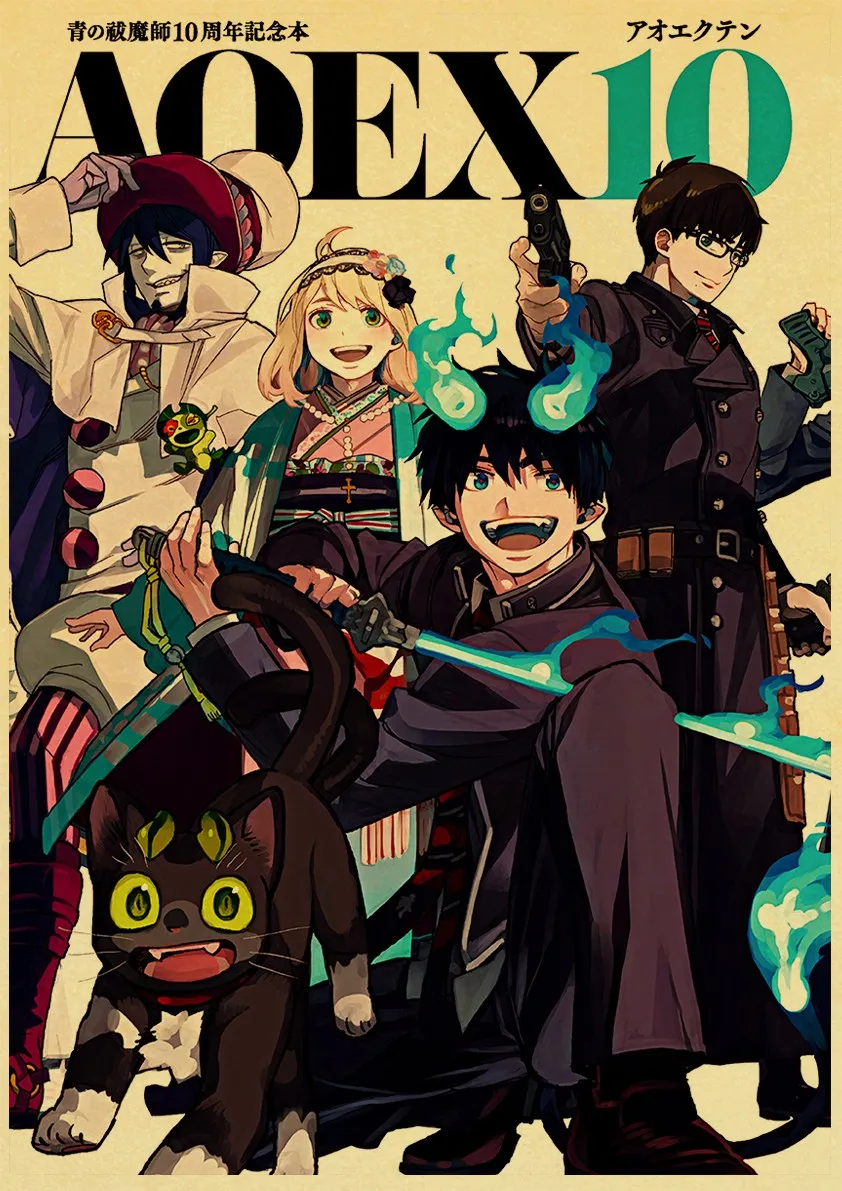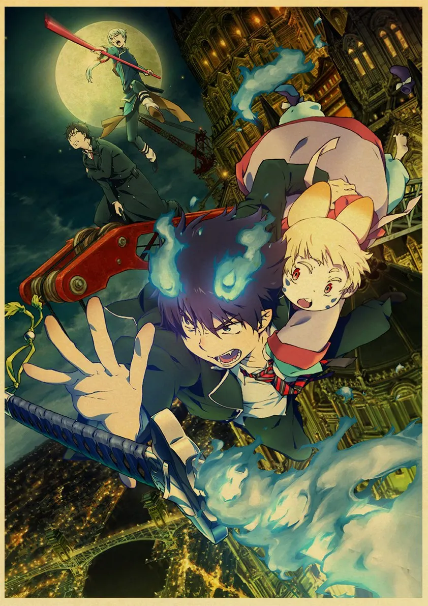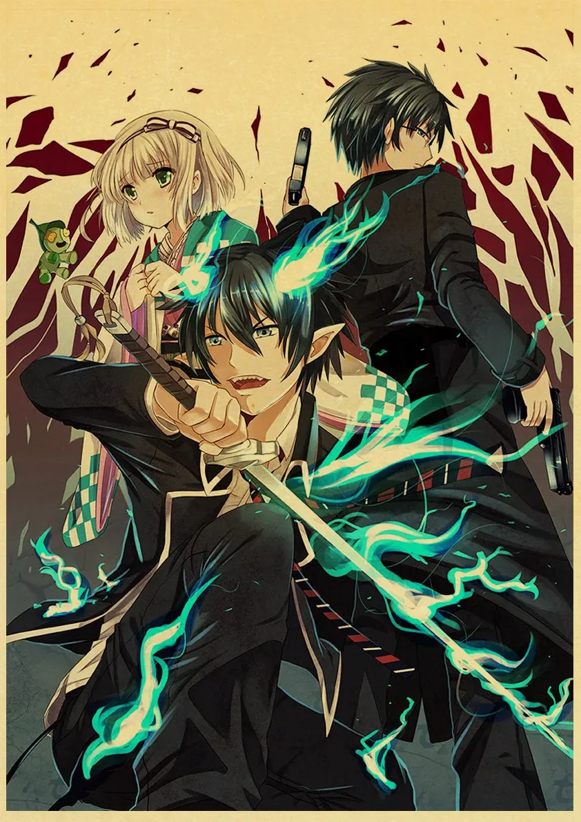 Анимированный постер Ao no Exorcist из японского аниме, постер из к...