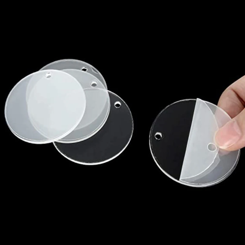 Прост в использовании: Наши прозрачный диск украшения сделаны из премиум акриловое волокно (0,12 дюйма), которые разработаны с отверстием (диаметр: 0,14 дюймов) рядом с краем, который идеально подходит для изготовления ювелирных изделий из акрила, брелки для ключей, висячие украшения или бирки. Вы можете легко связать брелки с цепочкой и Акриловые Плоские орнаменты вместе.