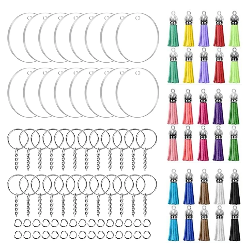 120 шт., кольцо для ключей, набор из акриловых заготовок для ключей с кисточкой, включая круглые заготовки для ключей из акрила (2 дюйма и 3 дюйма)