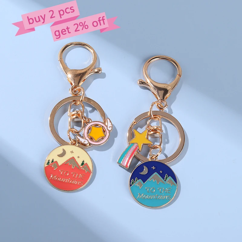 Брелок для ключей с изображением гор, Луны, звезды, приключений, вершины гор