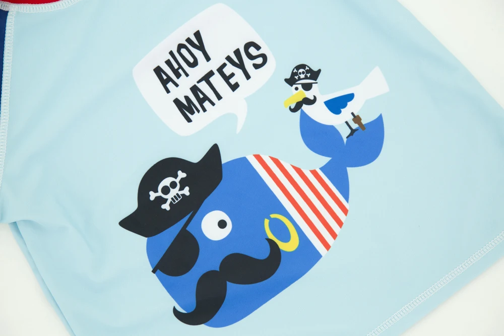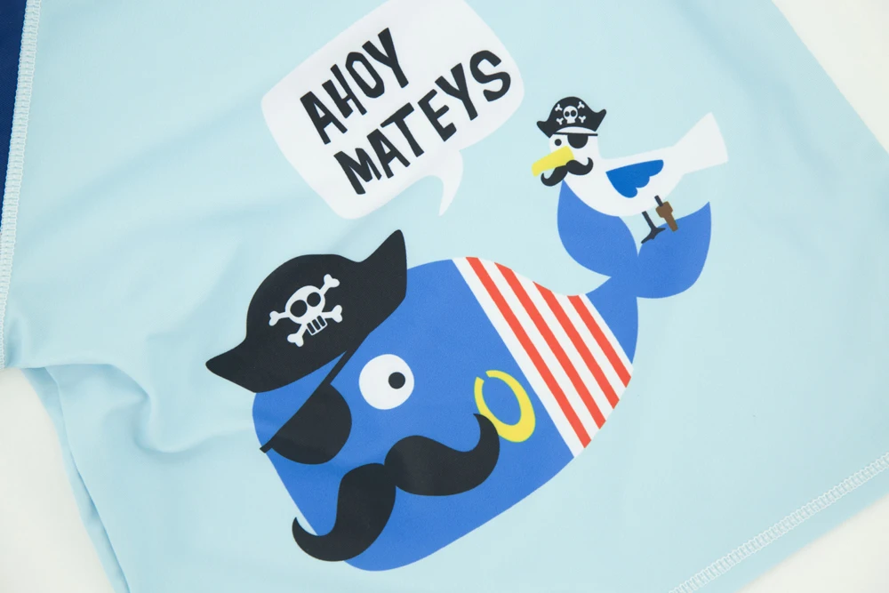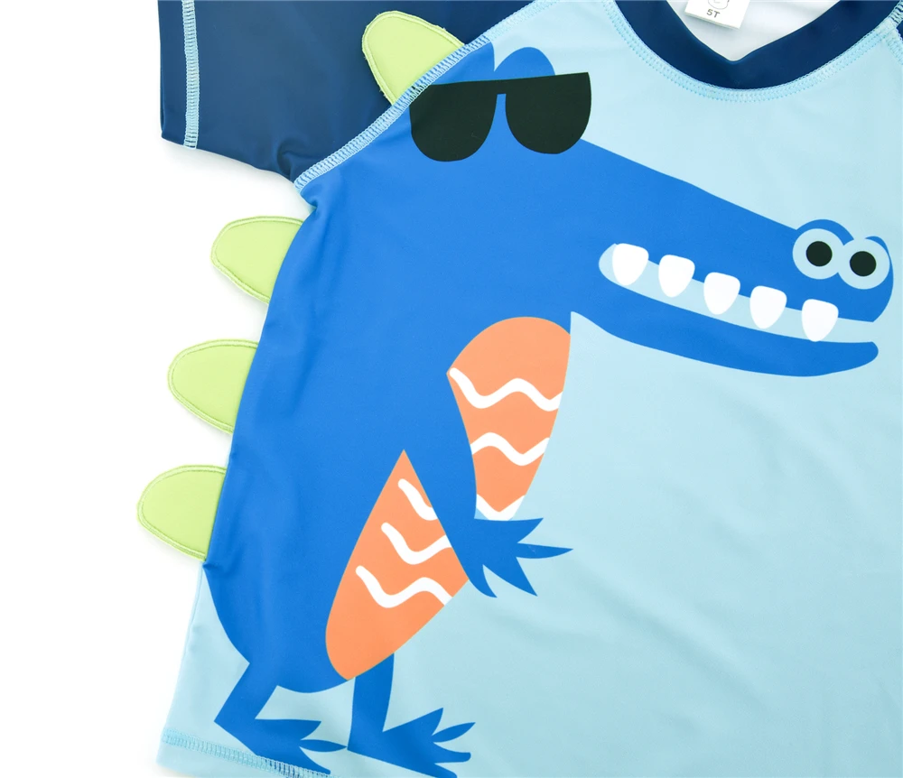 2 шт., детский купальный костюм с принтом рыбы и коротким рукавом