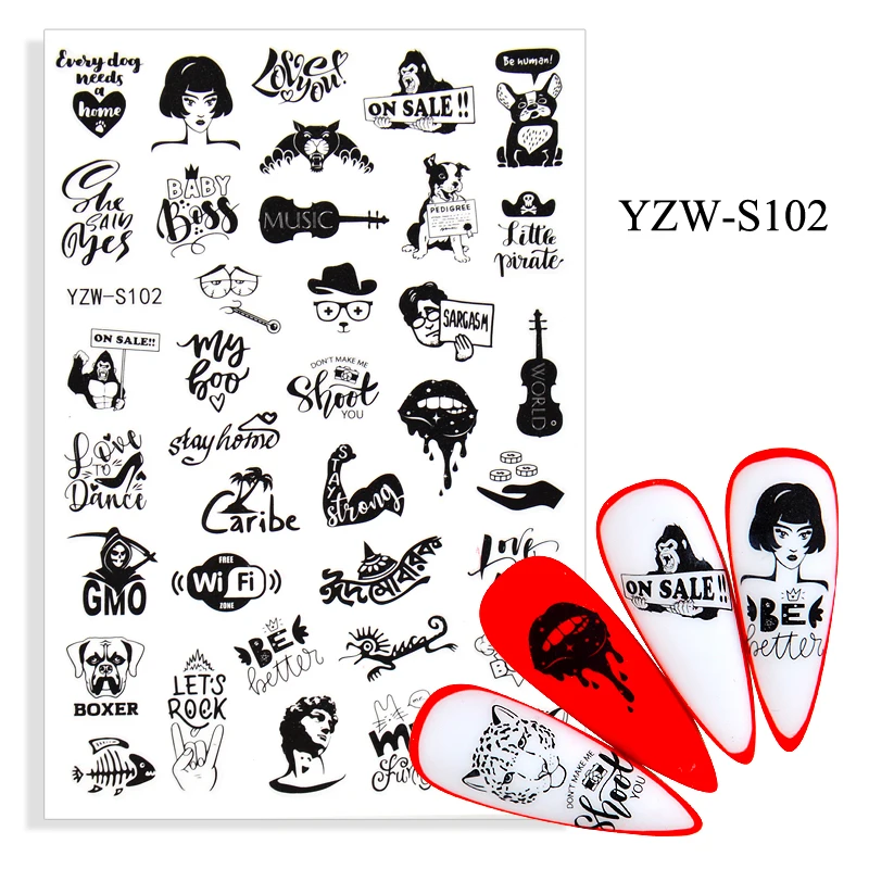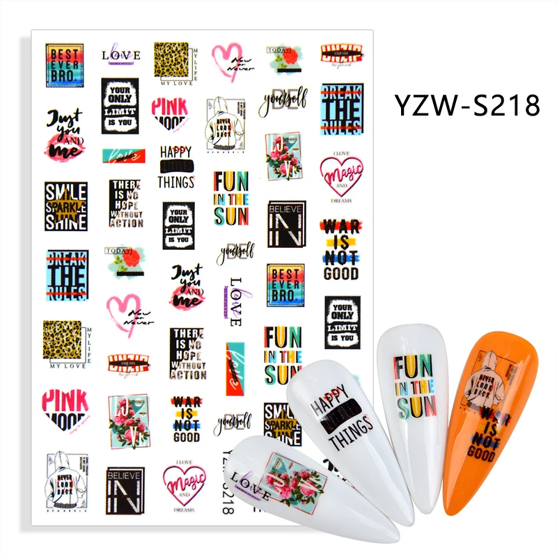 Наклейки для ногтей с буквами, цветами, растениями, лицевыми узорам...