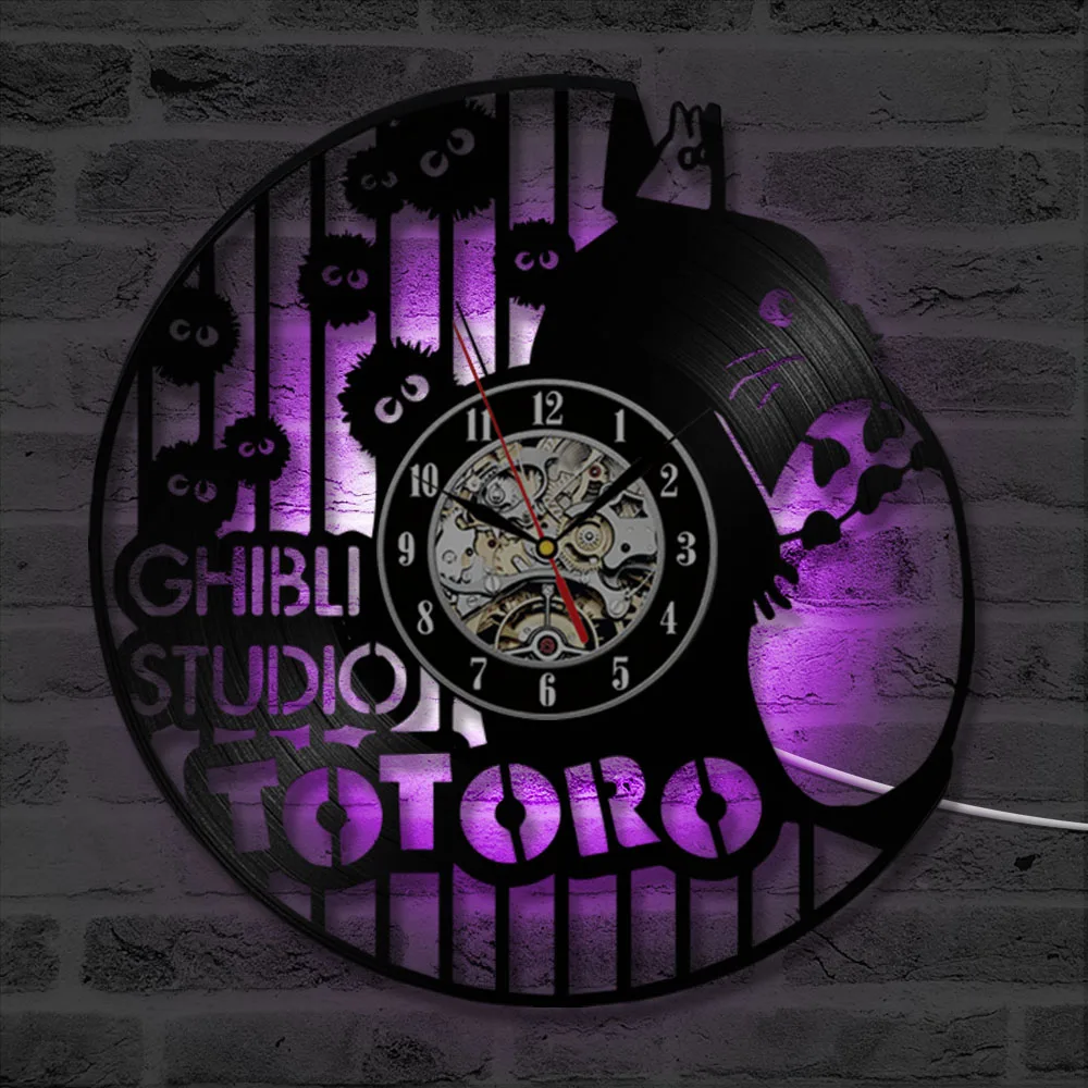 Настенные часы с виниловой записью, классические студийные декоративные беззвучные светодиодсветодиодный часы в стиле аниме Тоторо, ретро CD, креативные и антикварные