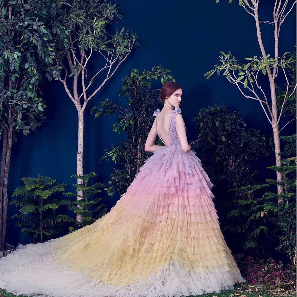 Роскошное платье с градиентом в несколько рядов, искусственное платье с V-образным вырезом, свадебное платье принцессы со шлейфом, платье для дня рождения, 15 лет