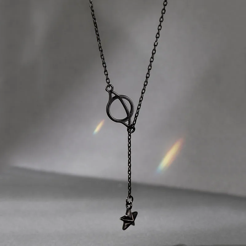 Ожерелье в готическом стиле с черной планетой и звездами, простое ю...