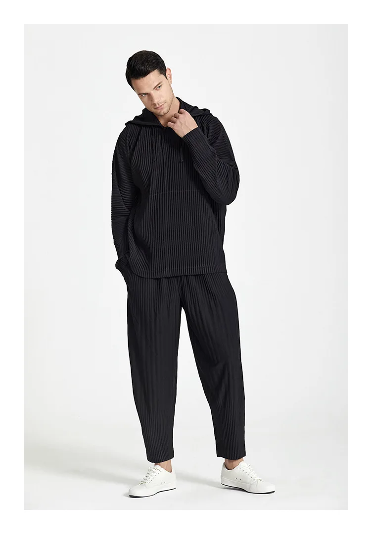 Мужской летний свитер с капюшоном, модная свободная простая шапка Мияк со складками, большого размера, для домашнего использования, новинка 2021