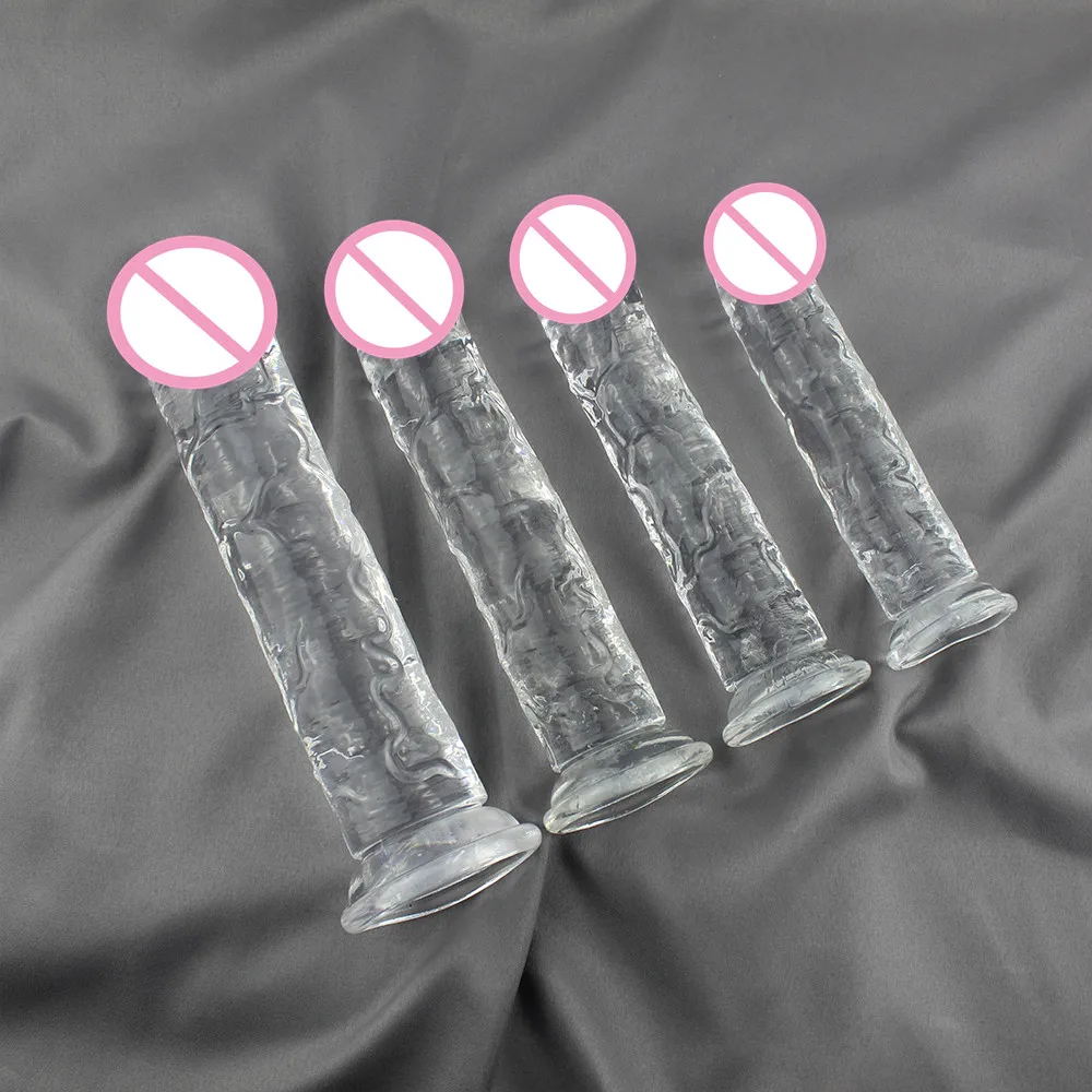 Прозрачный реалистичный фаллоимитатор на присоске, огромный фаллоим...
