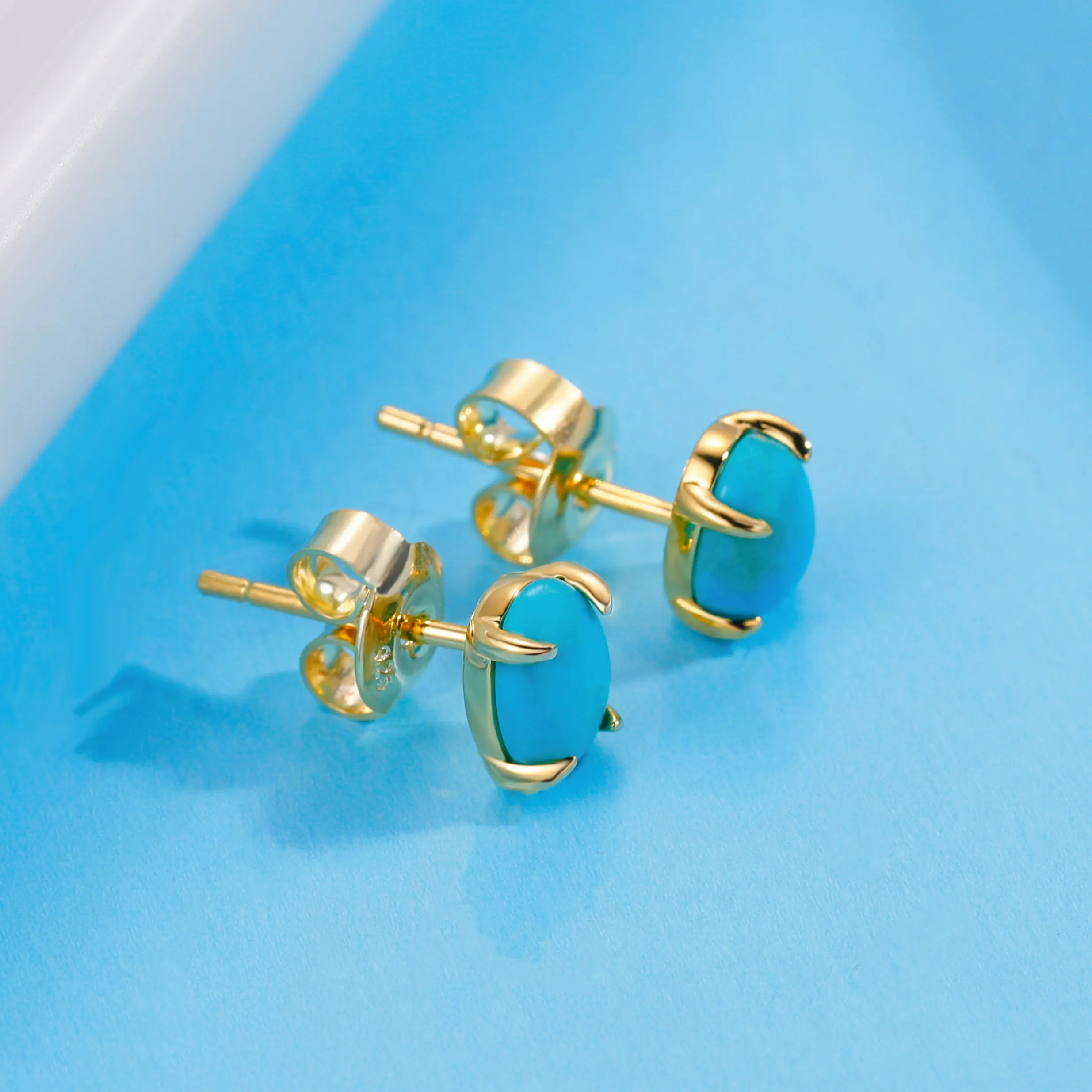 Серьги-гвоздики женские из серебра 925 пробы с овальным сапфиром