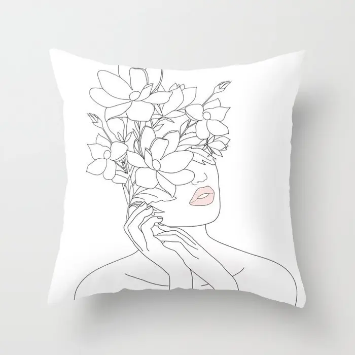 Минималистичные линии подушка с абстрактным изображением подушка полиэстер характер Цветок голова диван наволочка черно-белая Геометрическая наволочка