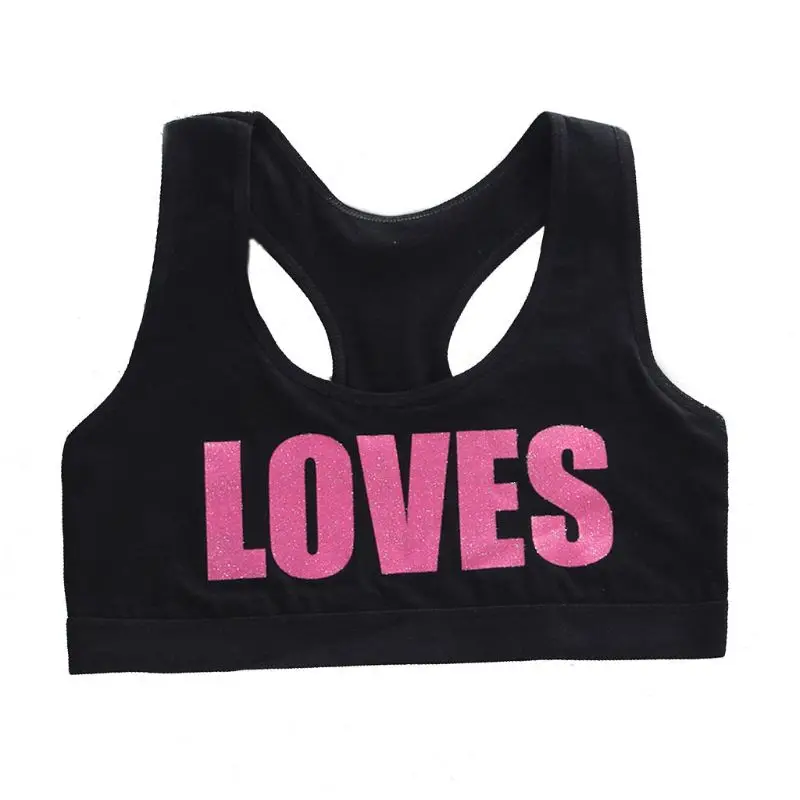 Спортивный бюстгальтер из хлопка с буквенным принтом для девушек, однотонное нижнее белье с широкими бретельками, бюстгальтер без косточек