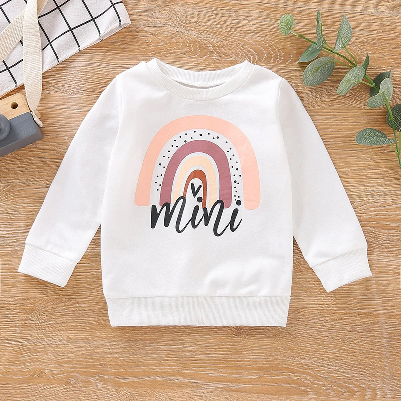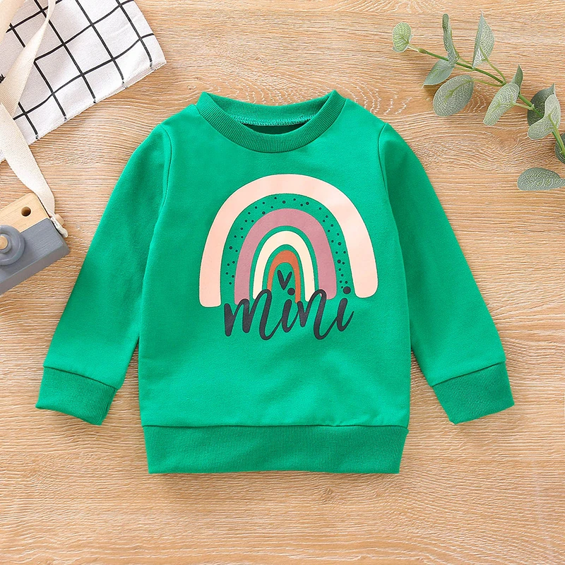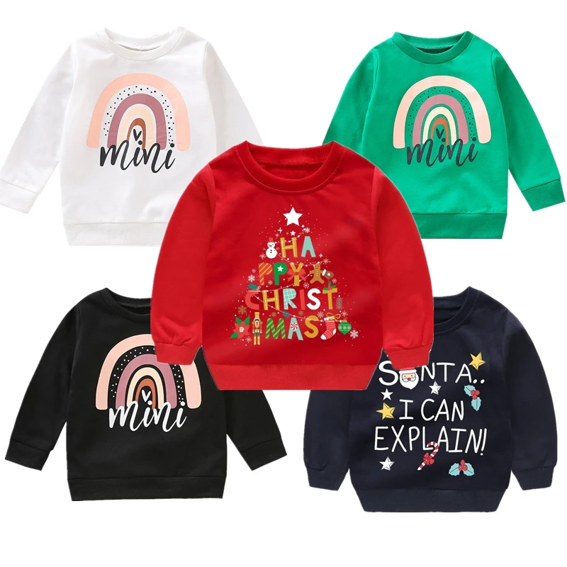 ВесенняяОсенняя футболка с длинным рукавом для девочек, радужная ткань с принтом букв для маленьких мальчиков, Смешанная картонная теплая одежда на день рождения и Рождество