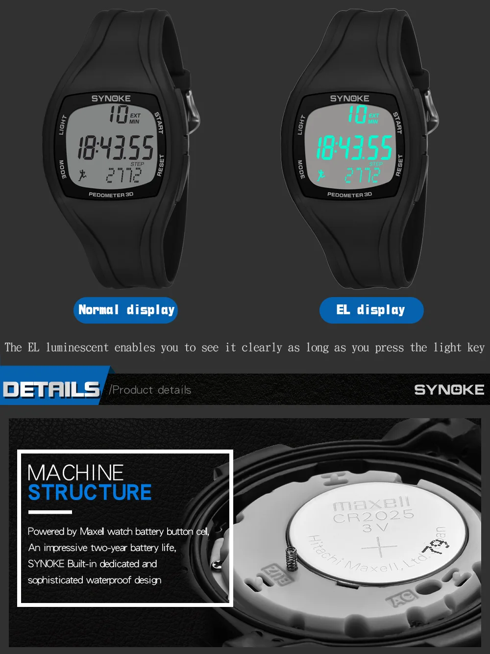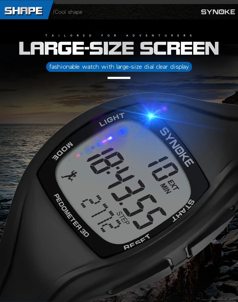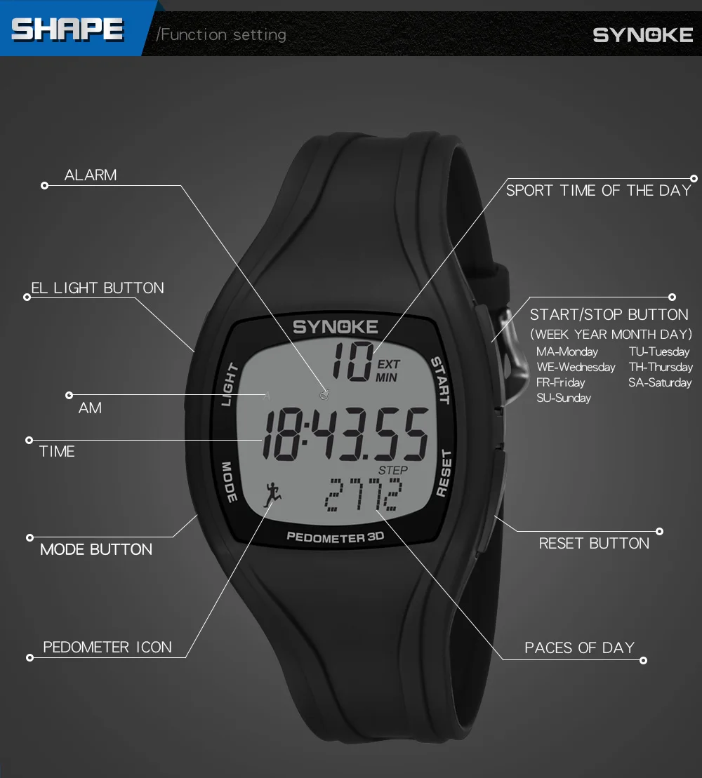Часы SYNOKE электронный шагомер мужские водонепроницаемые 5ATM цифр...
