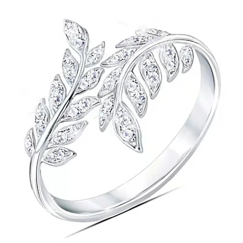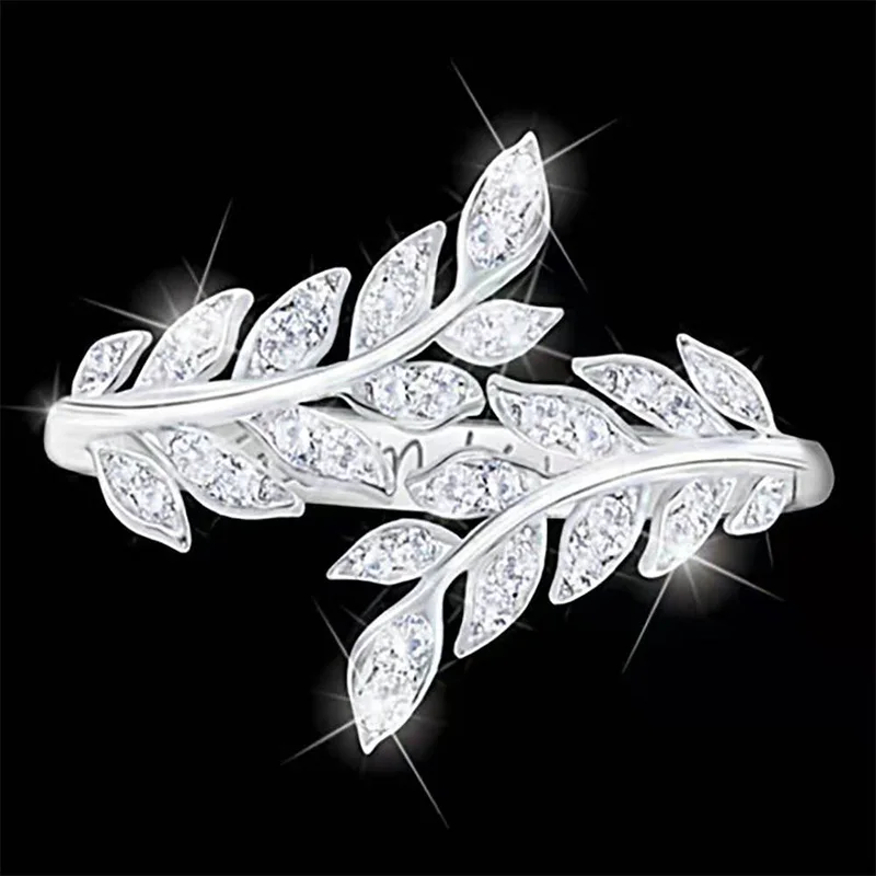 Простое модное кольцо серебряного цвета с кристаллами в виде листьев, изысканная бижутерия, регулируемое кольцо на палец для женщин, подарки на вечеринку, свадьбу, помолвку