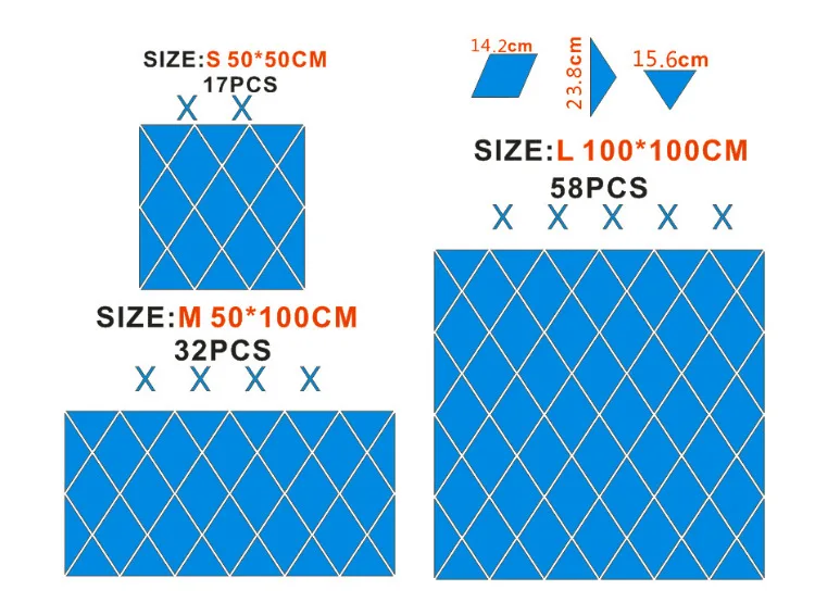 Размер: 50*50 см/17 шт., 50*100 см/32 шт., 100*100 см/58 шт.