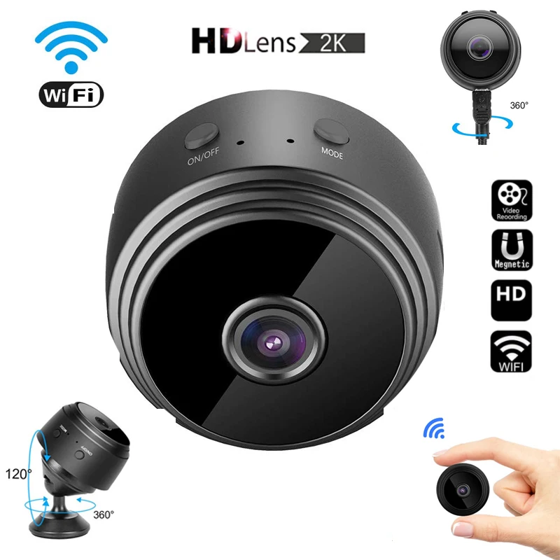 Мини-камера видеонаблюдения, 2K, HD, IP, Wi-Fi