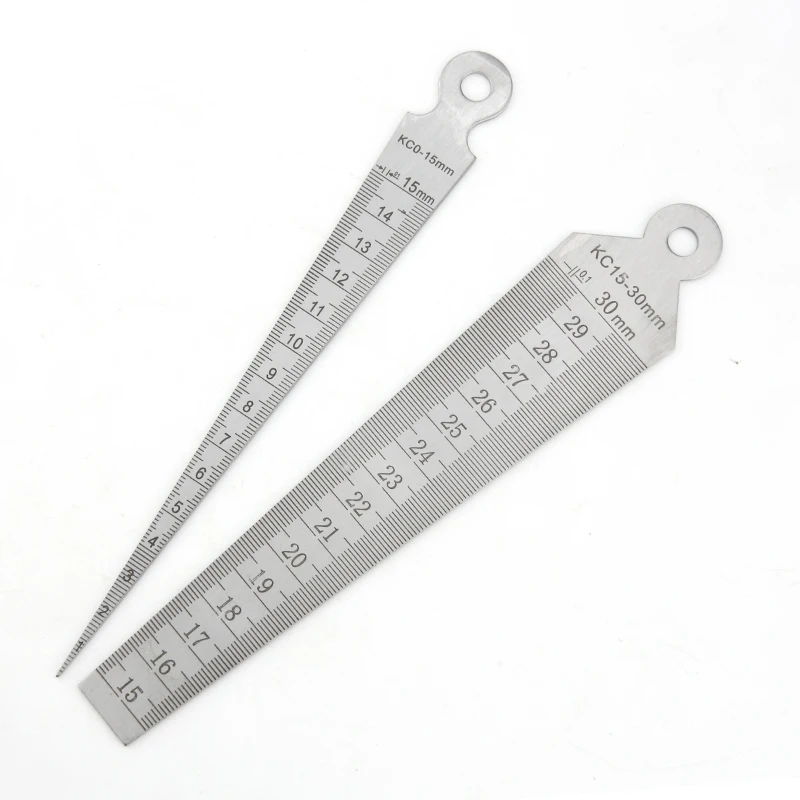 Название: Клинообразный щуп (Датчик диафрагмы/измеритель зазора)Характеристики: 1-15 мм/15-30 мм/30-45 мм/45-60 ммТочность: 0,1 мм/1/64 дюйма(Примечание: 1-15 мм и 45-60 мм являются двухсторонними метрическими и имперскими моделями, а остальные два-односторонними)Особенности: простое измерение, простота в использованииНазначение: используется для измерения зазора, внутреннего диаметра, диафрагмы