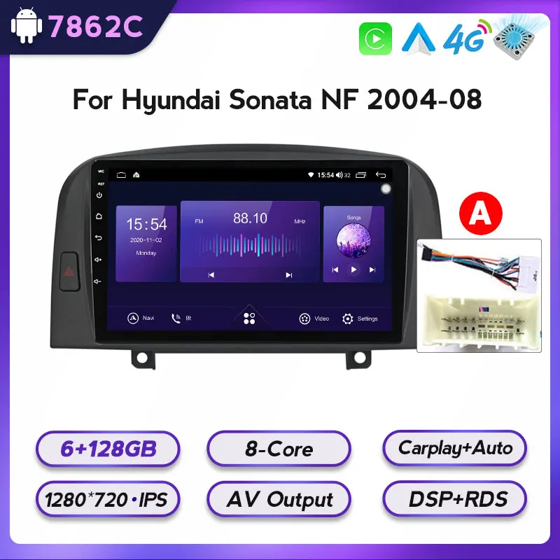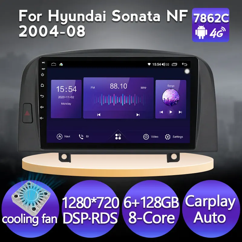 Автомагнитола 6G 128G, мультимедийный проигрыватель на Android 11 с GPS-навигацией для Hyundai SONATA NF 2004 2005 2006-2008, 2 DIN, без dvd
