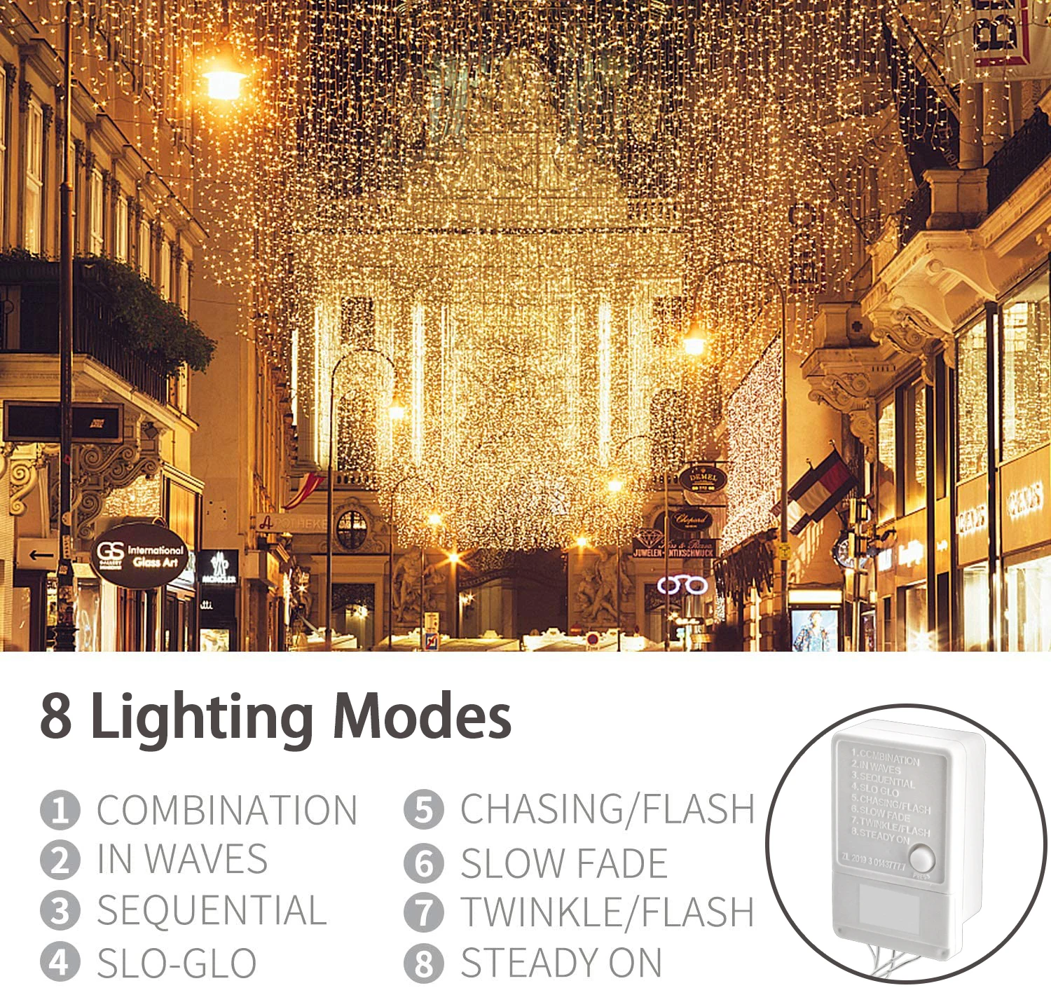 Ледянка светильник имеет 8 Разных светильник режимов: Комбинация, волны, последовательно, медленное светильник, мерцание/мигание, медленное затемнение и исчезновение, Мерцающая мерцание/мигание и постоянной светильник. Различные световые эффекты можно управлять одной кнопкой.
