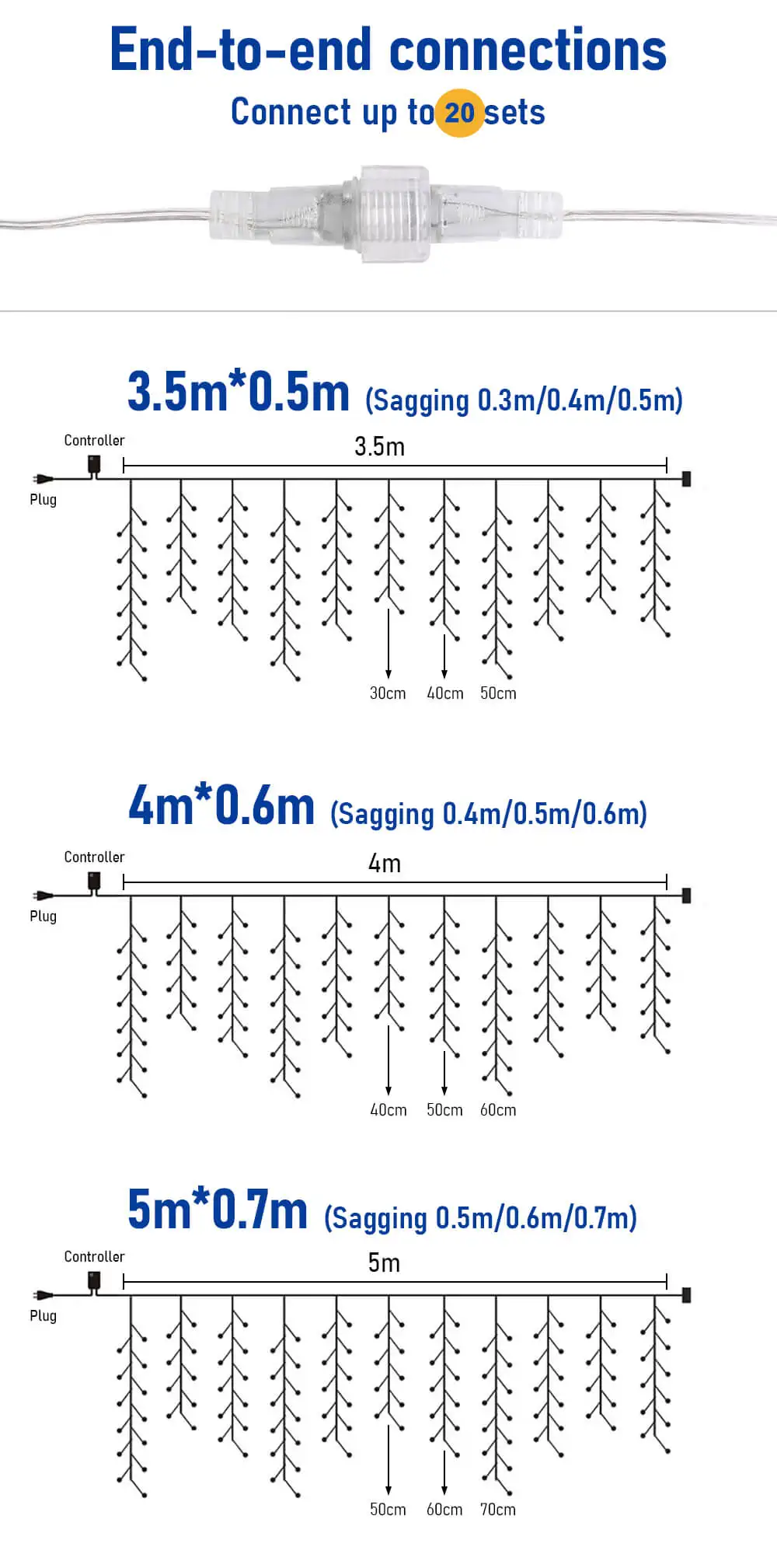 Один ключ управления различными световыми эффектами сосульки, быстро вставьте кнопки для регулировки режима, который вам нравится. Он может быть включен и выключен путем подключения и отключения напрямую.