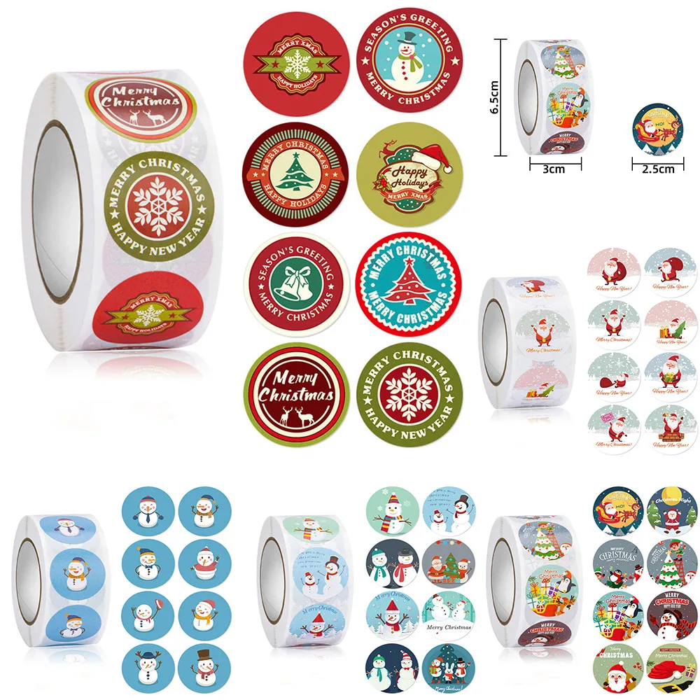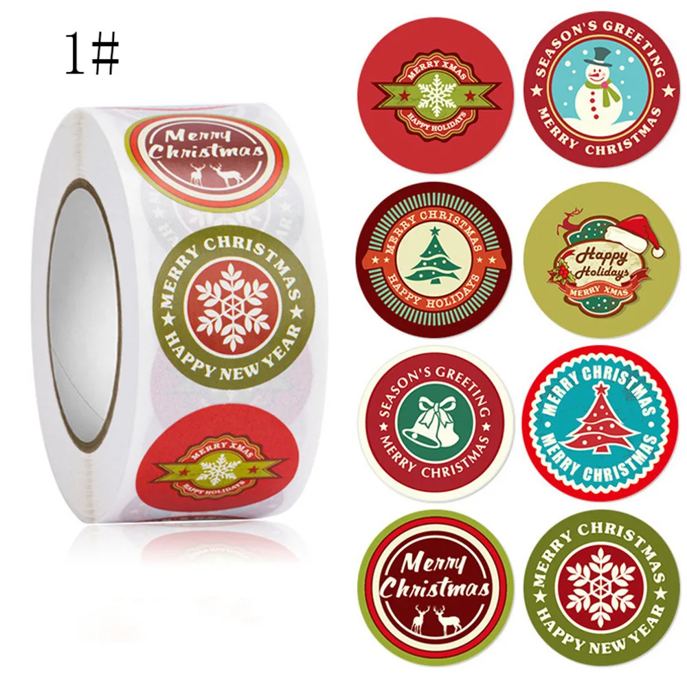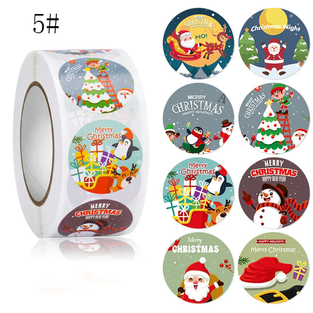 Наклейки рождественские, 500 шт., для запечатывания мешков с рождественской елкой, лосем, коробка для рождественских подарков этикеток, новогодние украшения