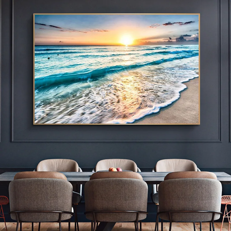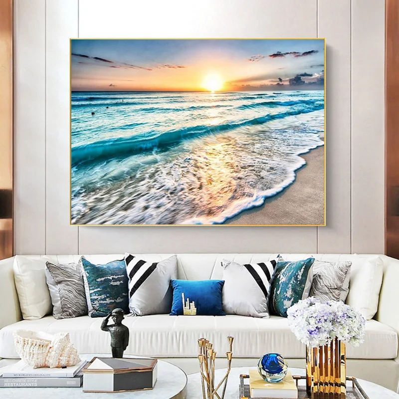 Природный Золотой пляж Бирюзовый морской парусный пейзаж холст картина, печатный плакат гостиная украшение дома Настенная картина