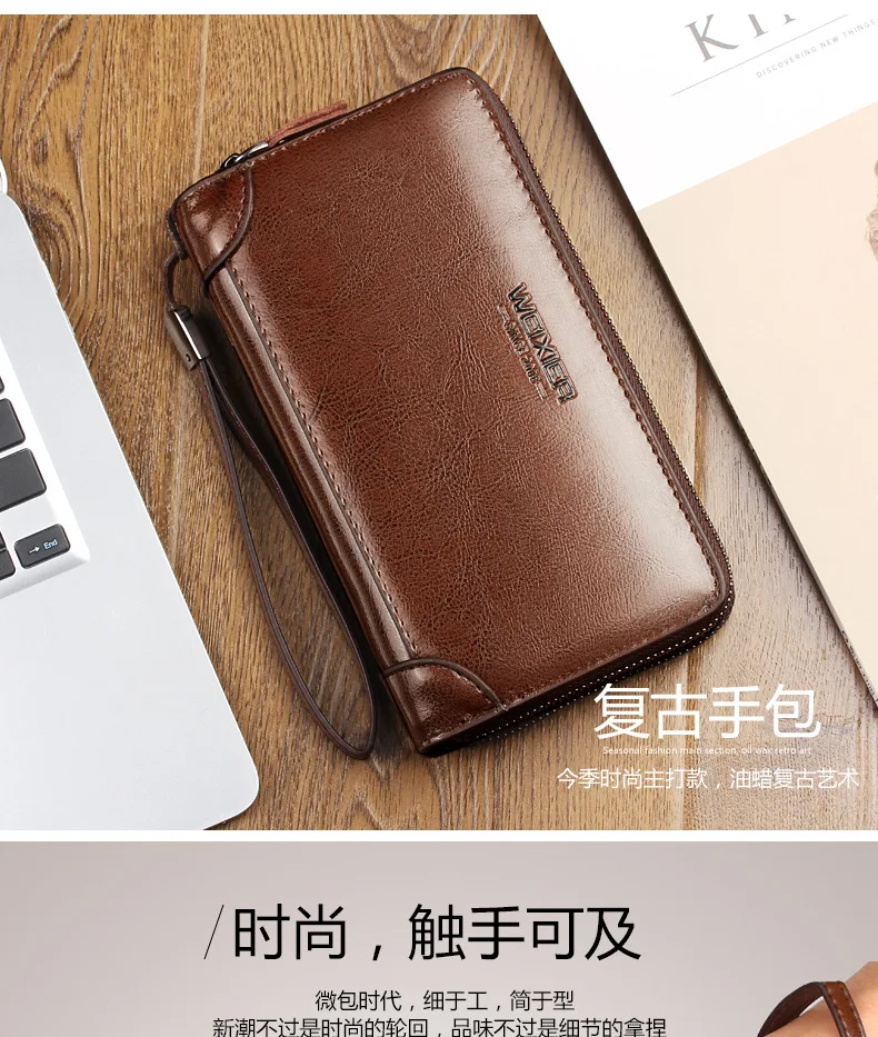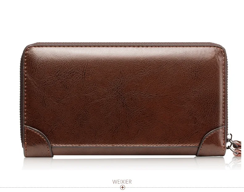 Weixier мужской кошелек, двойные сумки на молнии для мужчин, кожаный Длинный кошелек, вместительный кошелек, мужская сумка с зажимом, сумка для карт, портмоне