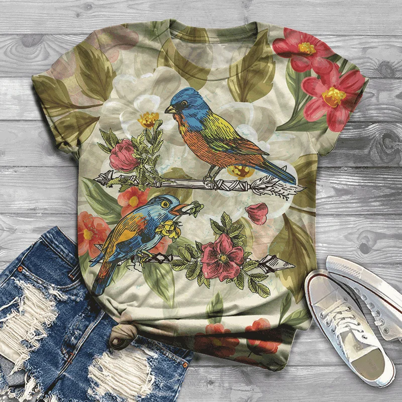 Женская Повседневная Летняя короткая футболка, модная футболка с 3D принтом птиц, удобная уличная футболка, футболка, милая аниме одежда