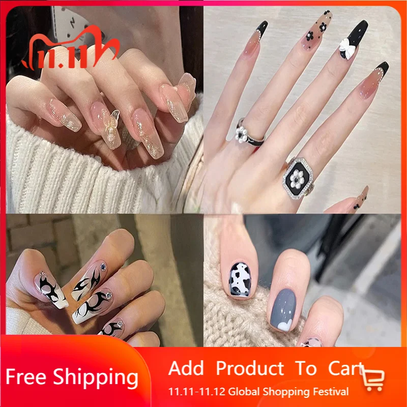 Искусственные палочки, дизайн, крышка гроба, квадратный поцелуй, прозрачный дисплей с накладными ногтями, искусственный прессон, клей для ногтей, искусственный набор, полный