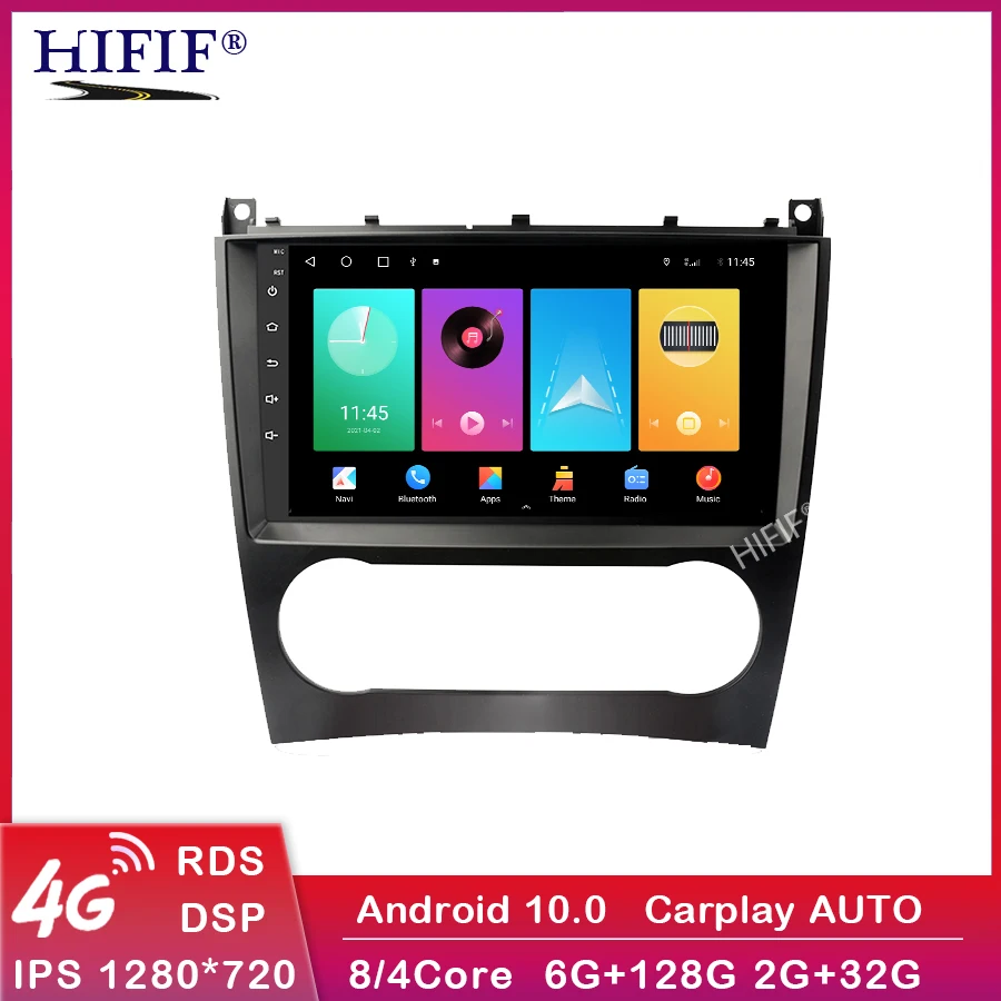 Мультимедийный плеер 6G + 128G QLED, 4G, Android 10, Авторадио, GPS, для Mercedes Benz C-Class W203CLC W203CLK W209, радио, навигация, DVD