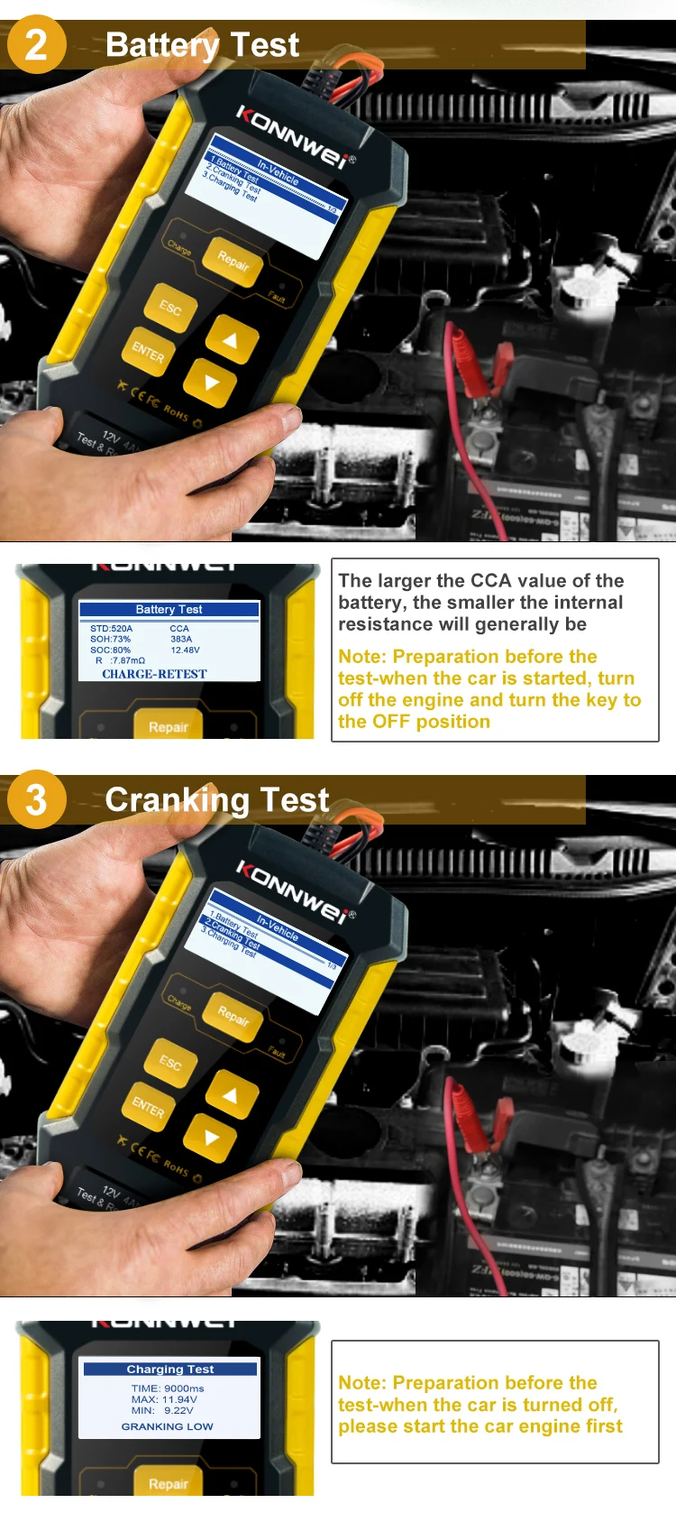 Тестер автомобильного аккумулятора KW510, многофункциональное устро...
