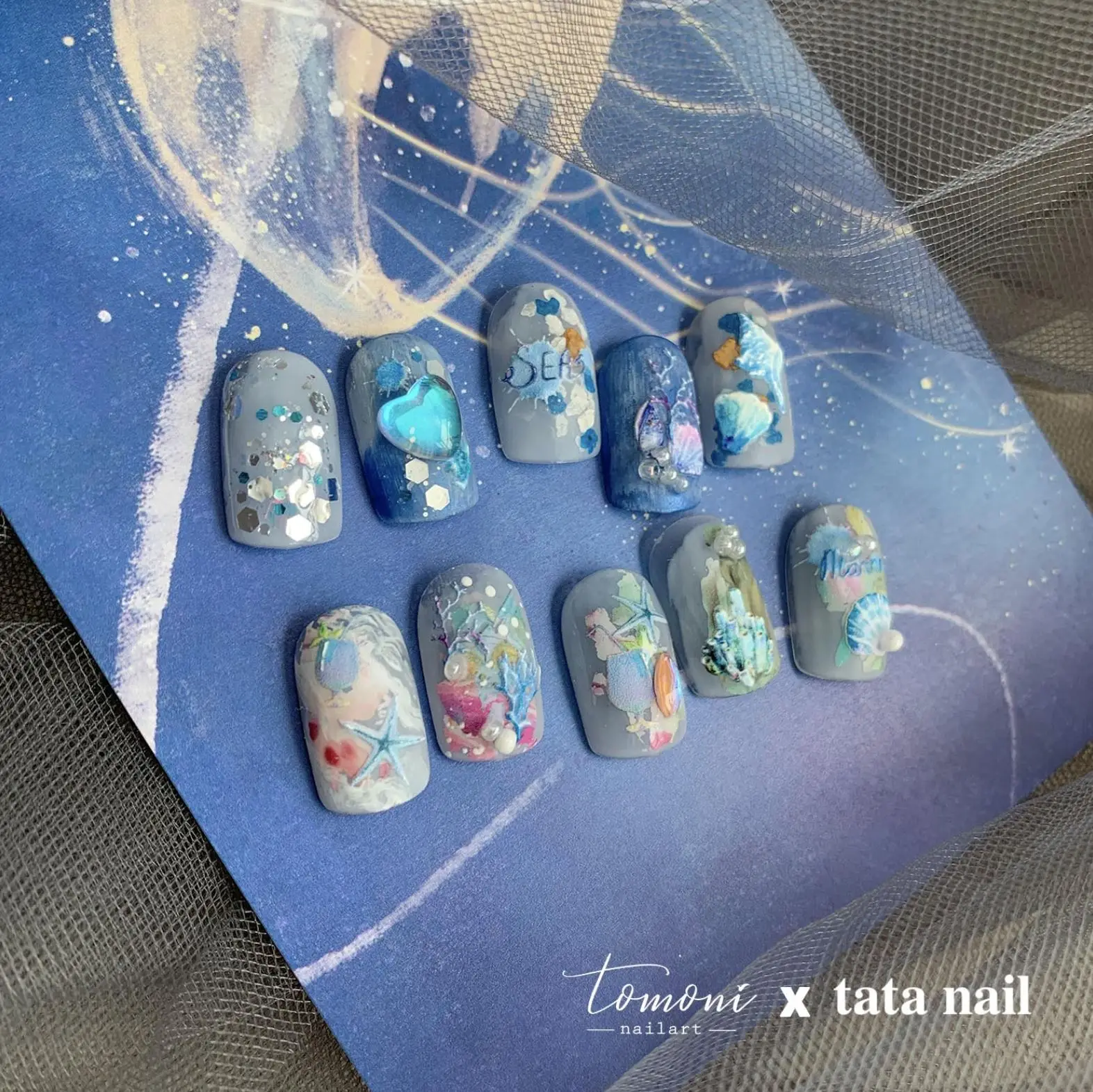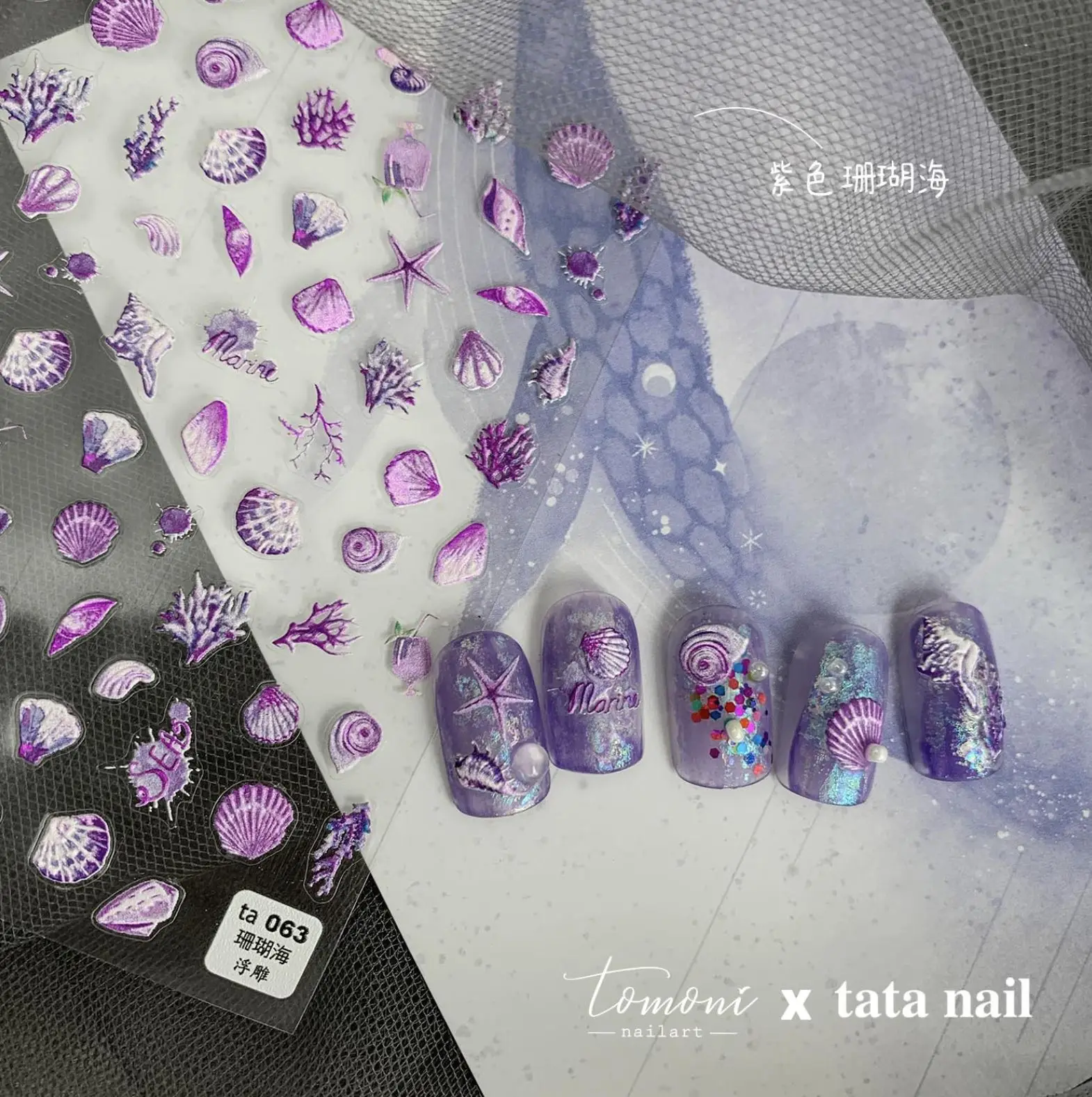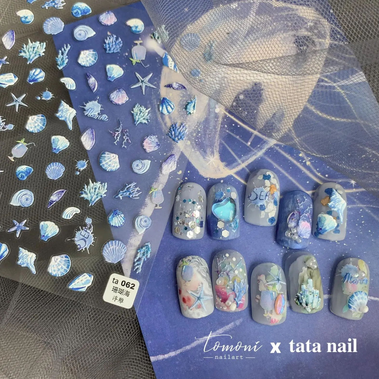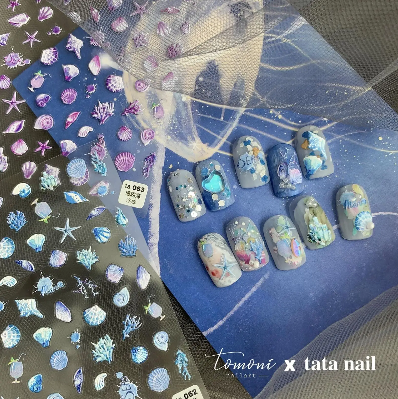 Высококачественные 3D наклейки для ногтей с изображением морских колючей, морских моллюсков, морских водорослей, декоративные материалы для ногтевого дизайна, наклейки для ногтей