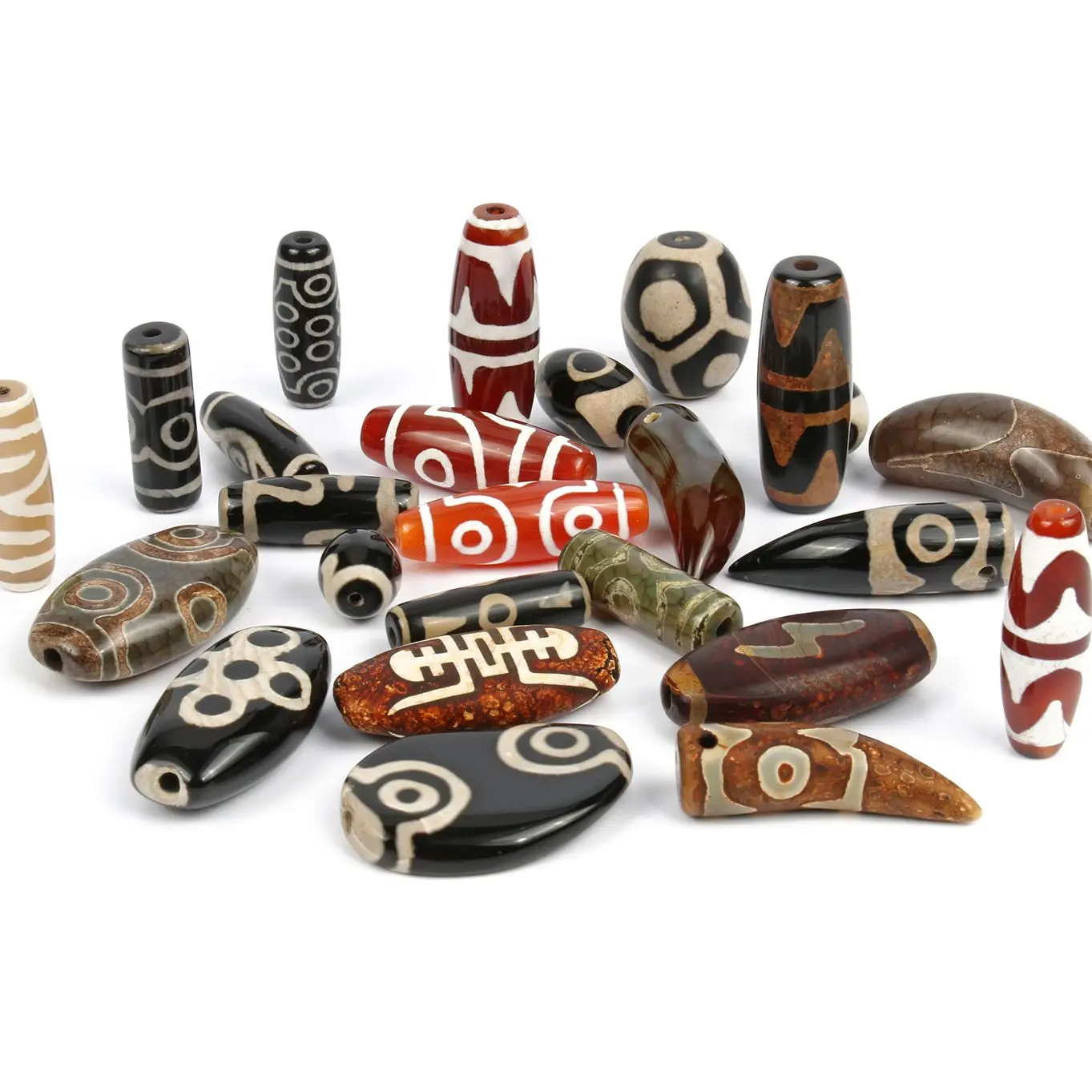 Винтажные бусины из натурального камня Тибетский дзи глаза Агаты овальные круглые антикварные бусины из агата буддийские барабанные бусины для изготовления ювелирных изделий своими руками