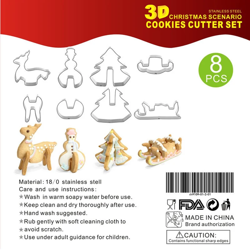 8 шт. 3D Трехмерная форма для печенья из нержавеющей стали, резаки для тортов, Рождественский имбирный домик, ручные инструменты для печенья
