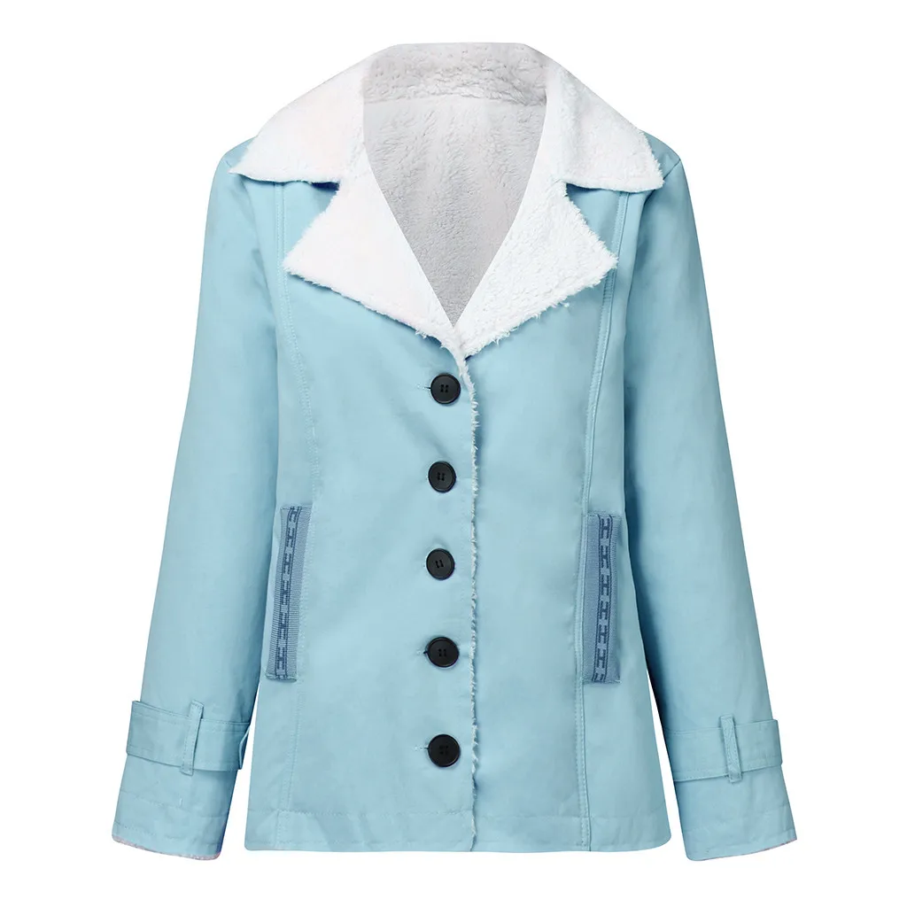 Куртка женская плюшевая с лацканами, с карманами, плотная, зимняя, ...