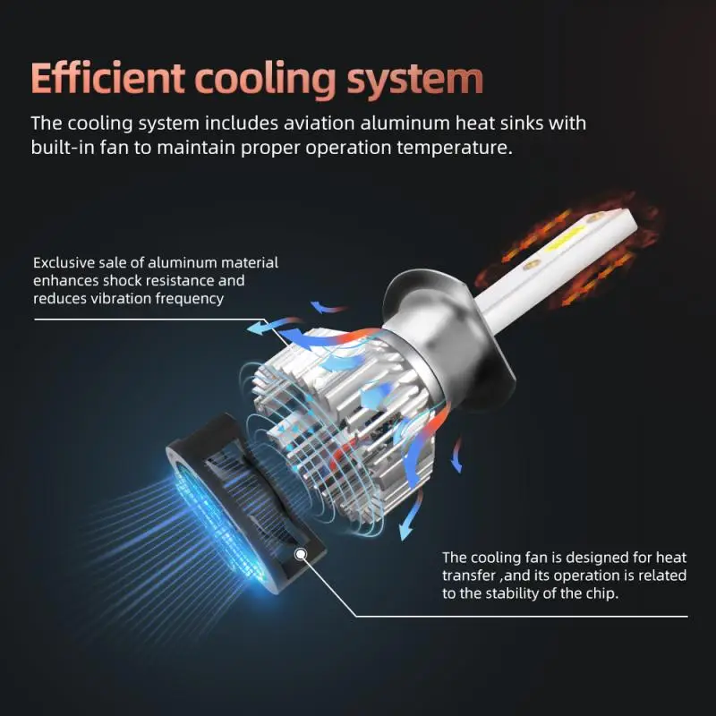 2. Мощное тепловыделение: без задней крышки, оснащен очень тихим охлаждающим вентилятором, скорость вращения до 12000/мин, высокая эффективность рассеивания тепла, может избежать увеличения температуры на лампах, увеличьте срок службы ламповых бусин.