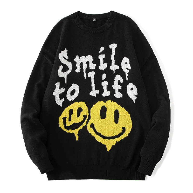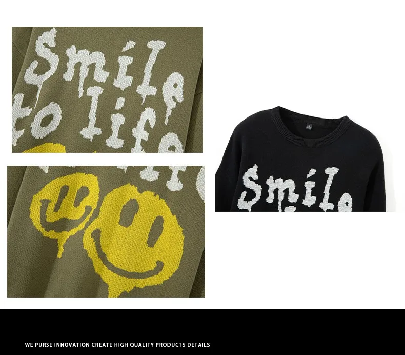 Зимний вязаный свитер со смайликом, Мужской пуловер, Мужской пулове...