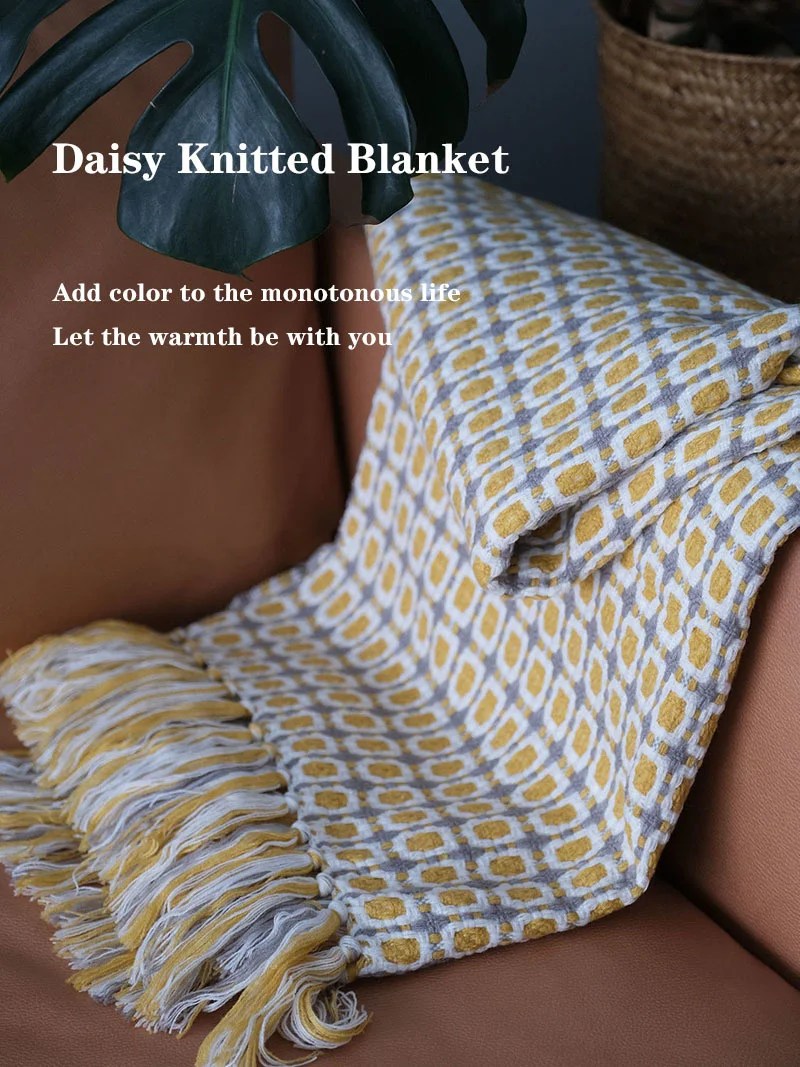 Пасторальный клетчатый чехол, вязаное одеяло для дивана, кровати, декоративное одеяло с кисточками, дорожная шаль для ТВ, воздушное одеяло s