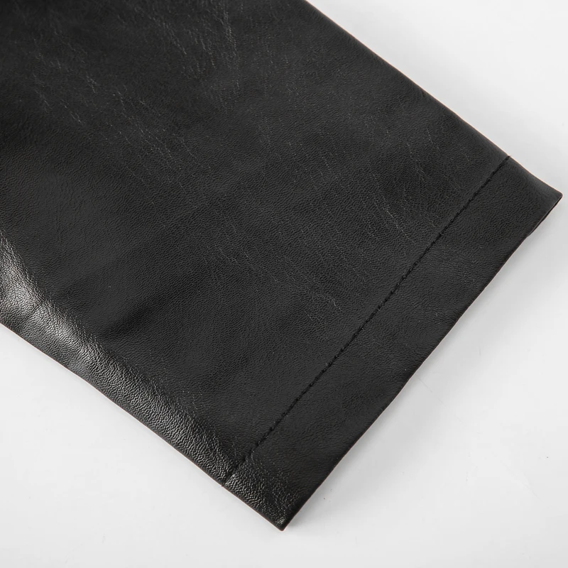 Мужская кожаная флисовая куртка, однотонная тонкая приталенная курт...