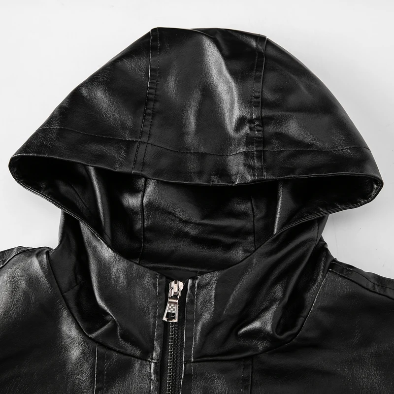 Мужские длинные кожаные куртки с капюшоном Толстовка куртка-бомбер ...