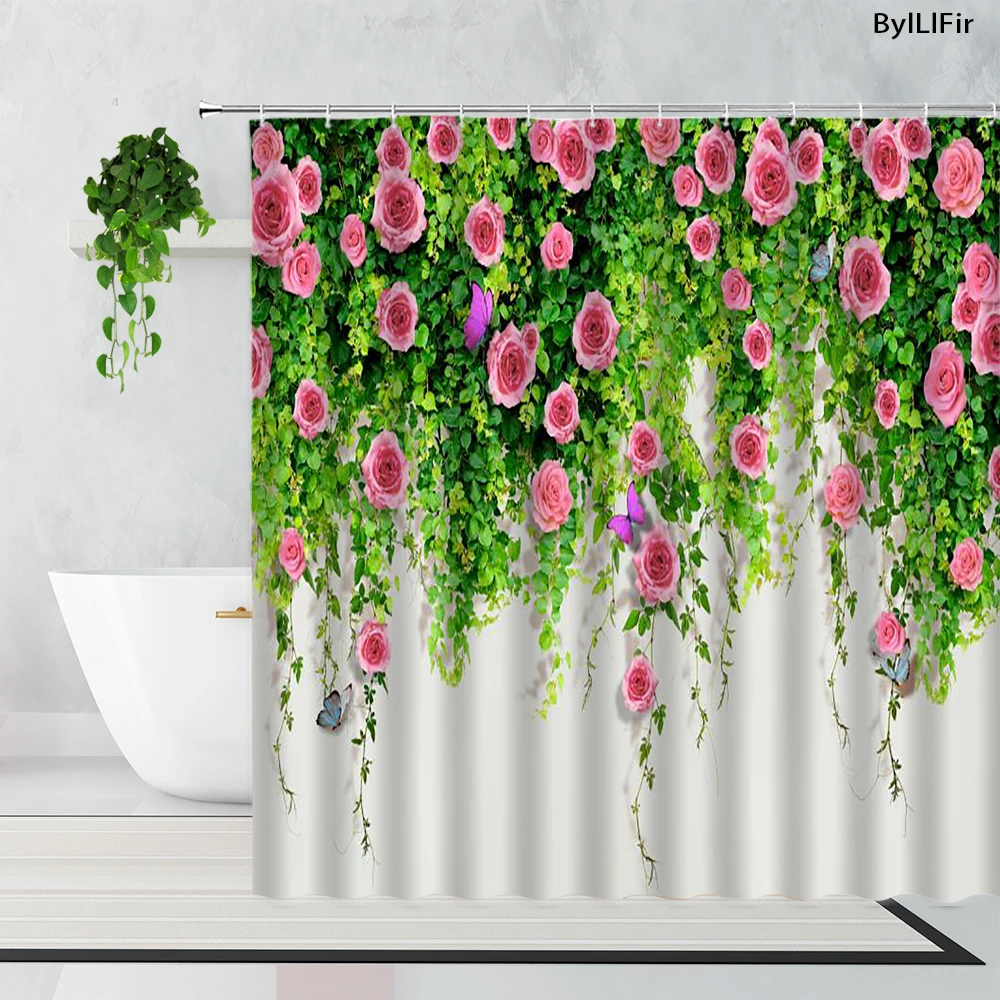 3D занавеска для душа в виде Розы, настенный Ландшафтный декор для ...