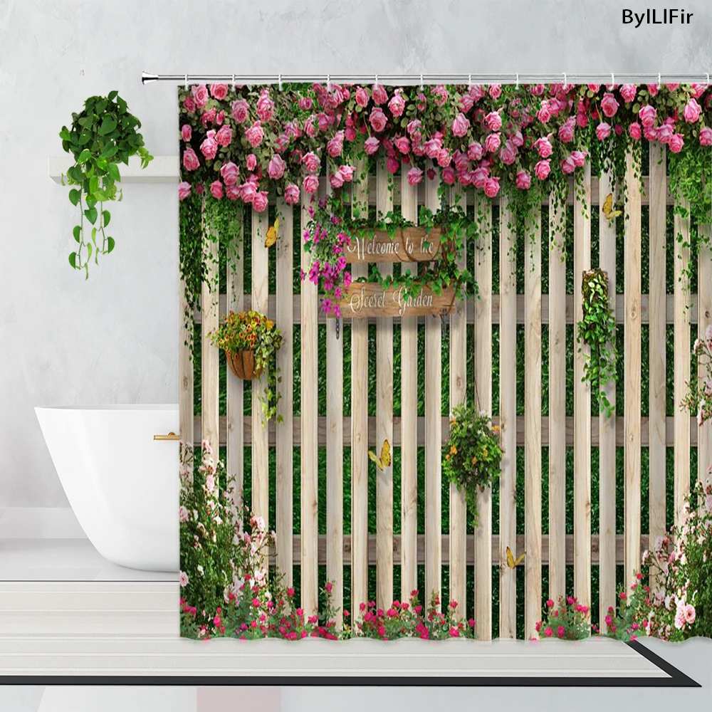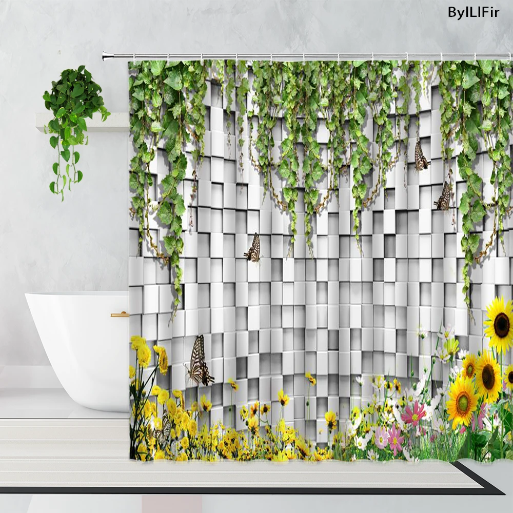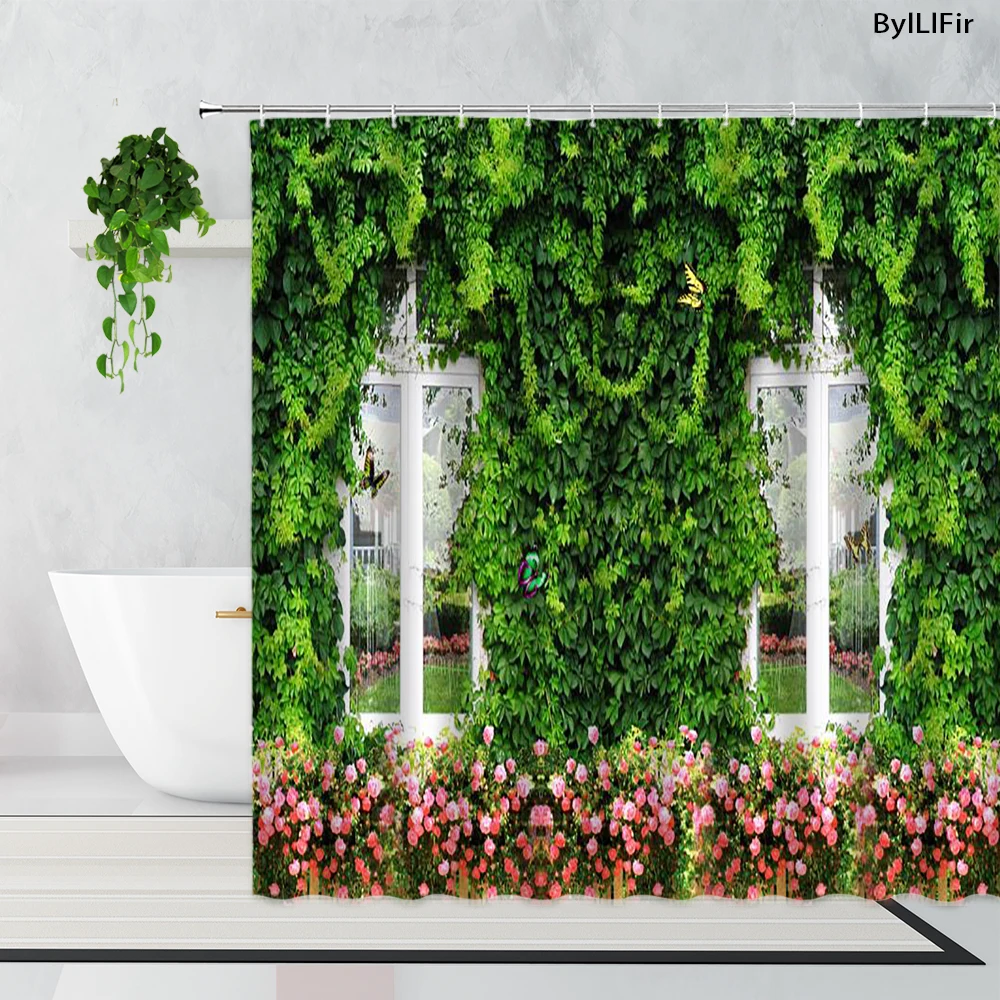 Садовая Ландшафтная занавеска для душа, s Зеленые Лозы, цветы, забо...