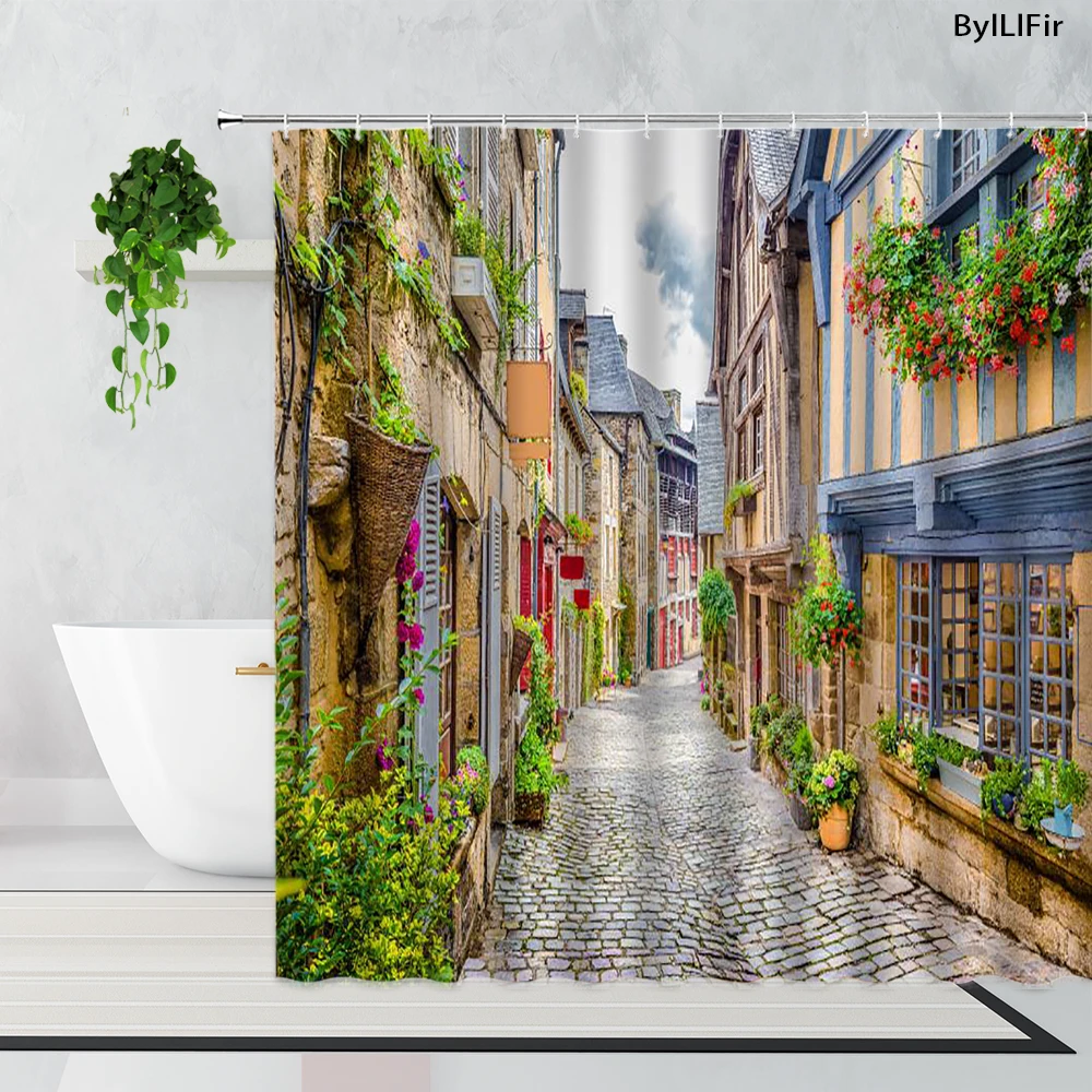 Занавеска для душа в стиле ретро уличный пейзаж, садовый занавес с ...