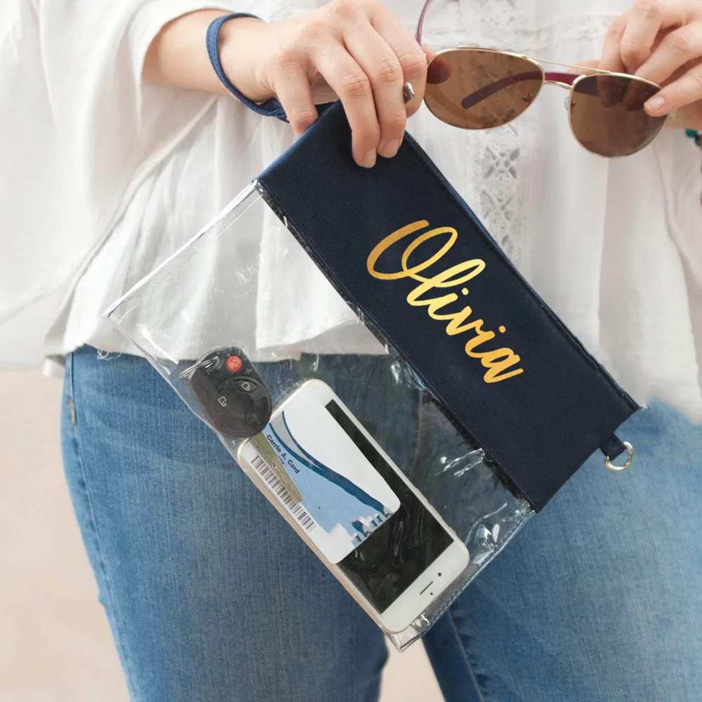 Персонализированный с монограммой клатч для стадиона прозрачный чехол на молнии для игры на заказ сумка через плечо прозрачная вместительная сумка для дня рождения прозрачный кошелек подарочная сумка