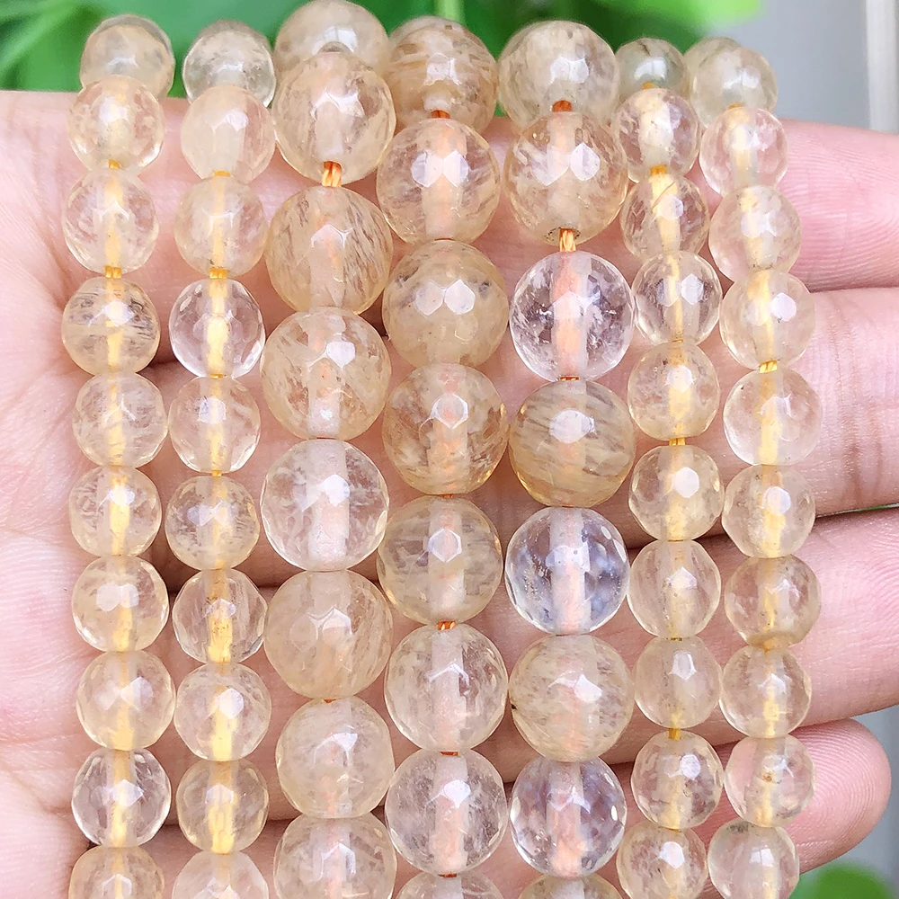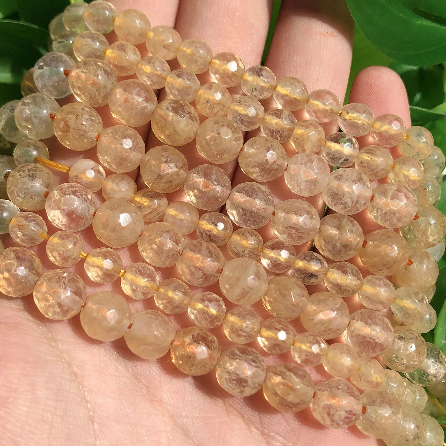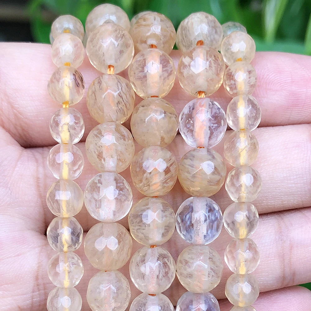 Граненые золотые бусины из рутилированного кварца подвески из природного камня, разделительные свободные бусины для самостоятельного изготовления ювелирных изделий, браслет 6 мм, 8 мм, 10 мм, 15 дюймов