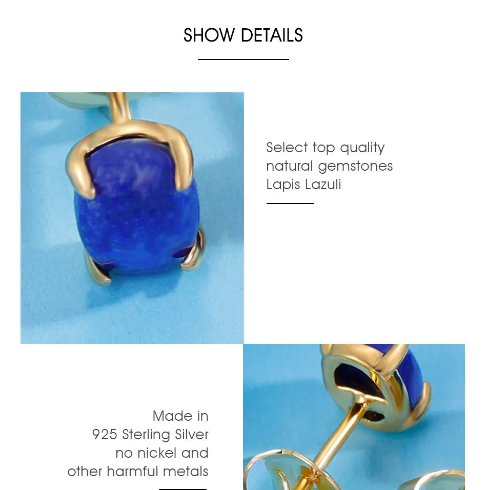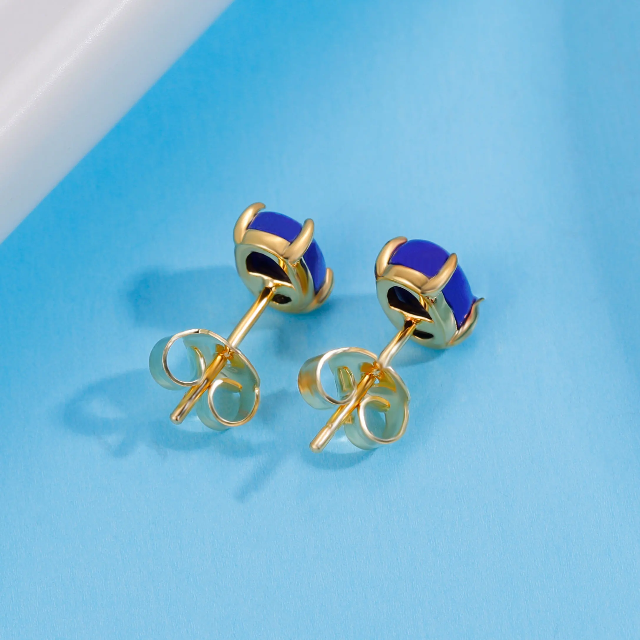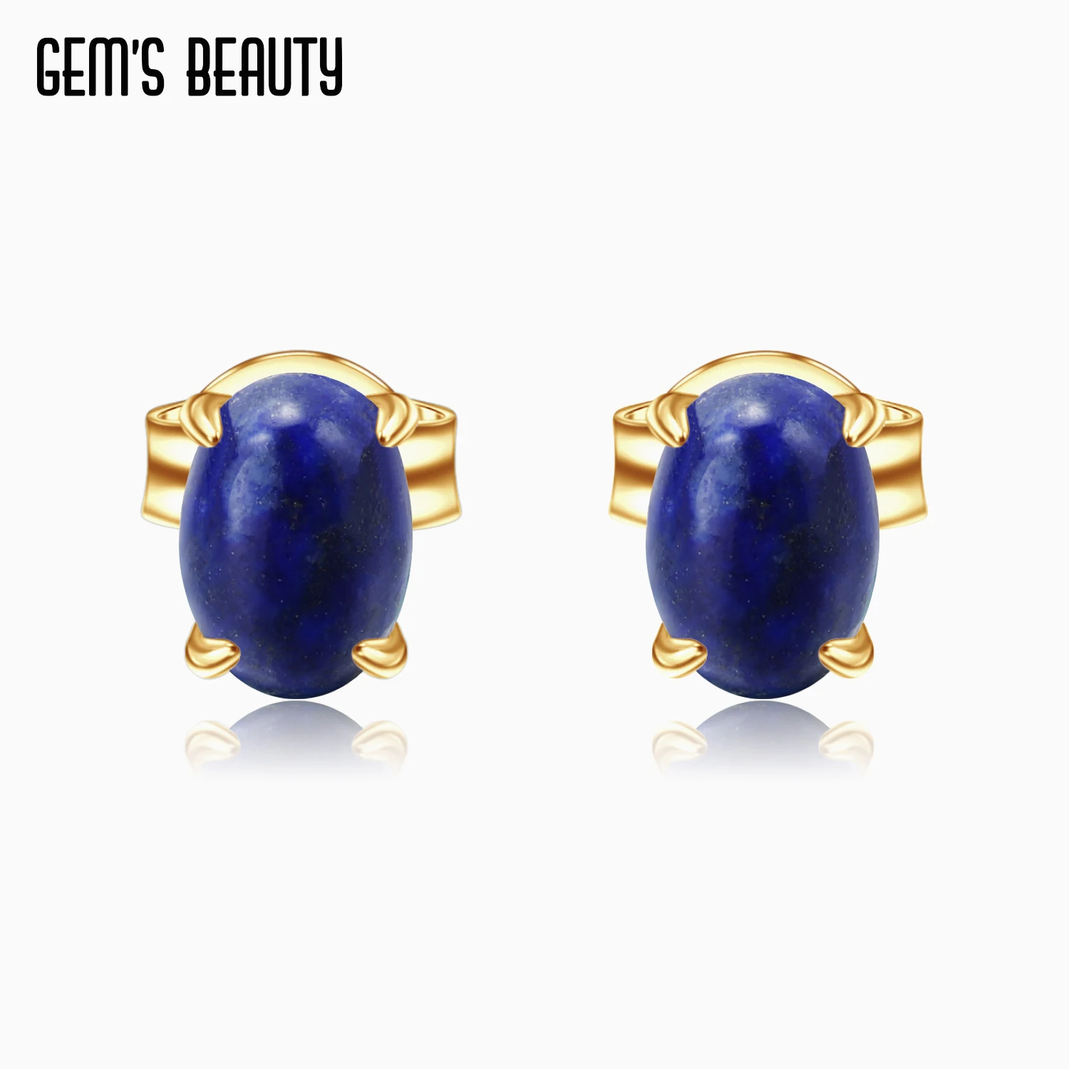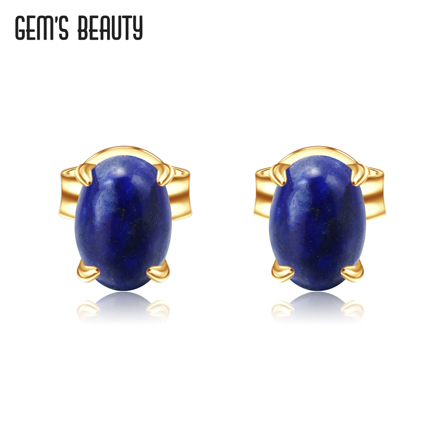Серьги-гвоздики женские из серебра 925 пробы с овальным сапфиром