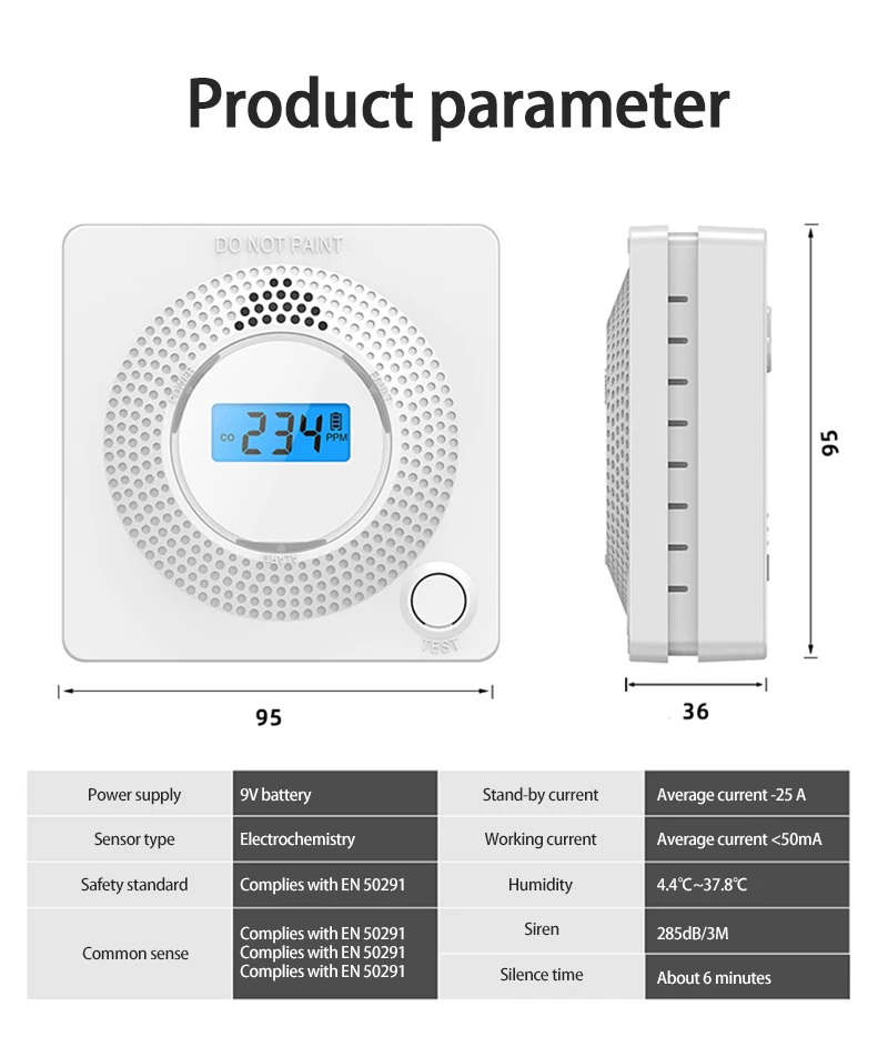 Это устройство с питанием от батареи Tuya WIFi приложение управления сигнализацией окиси углерода с передовым электрохимическим датчиком для домашнего использования. Обратите внимание, что данное устройство не обнаруживает дыма, тепла, пламени или других опасных газов.