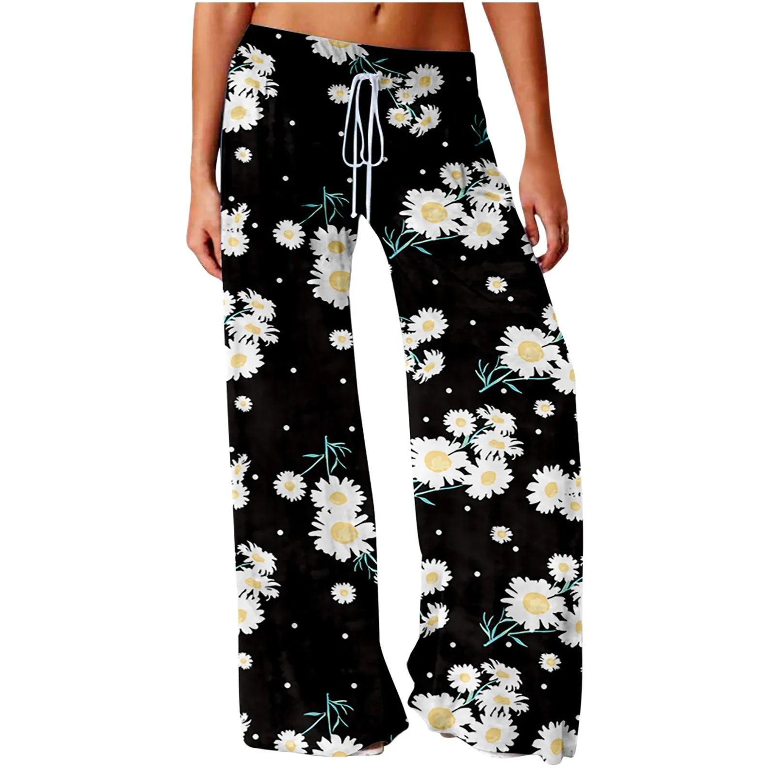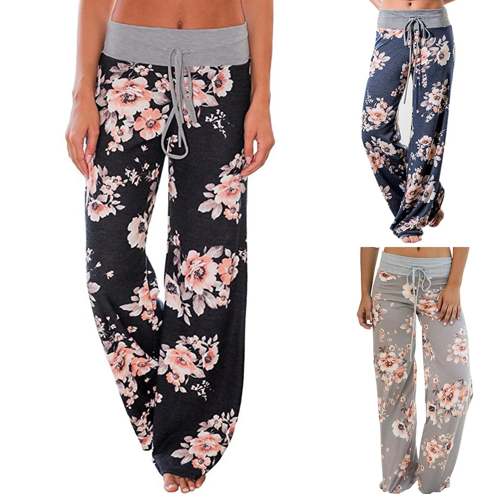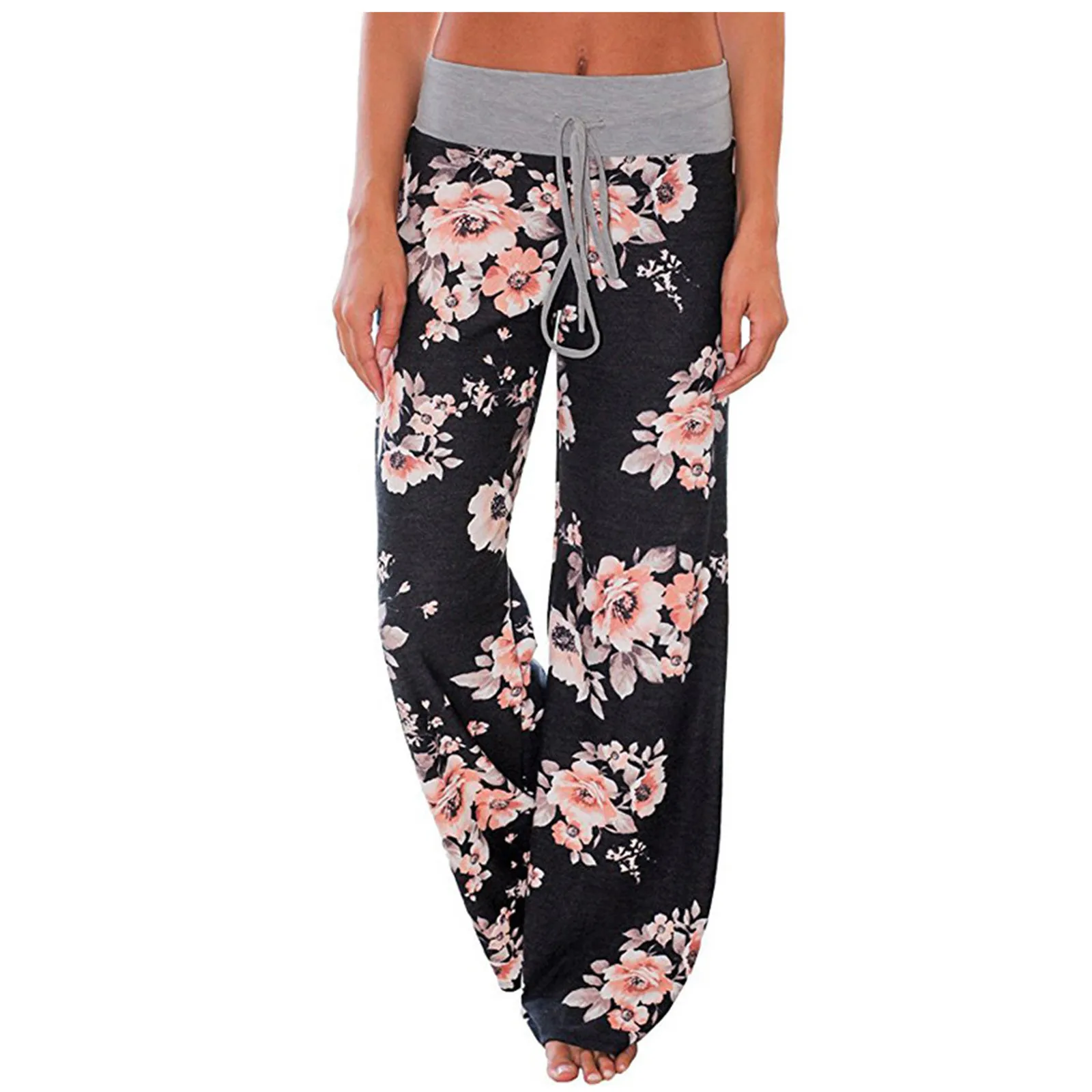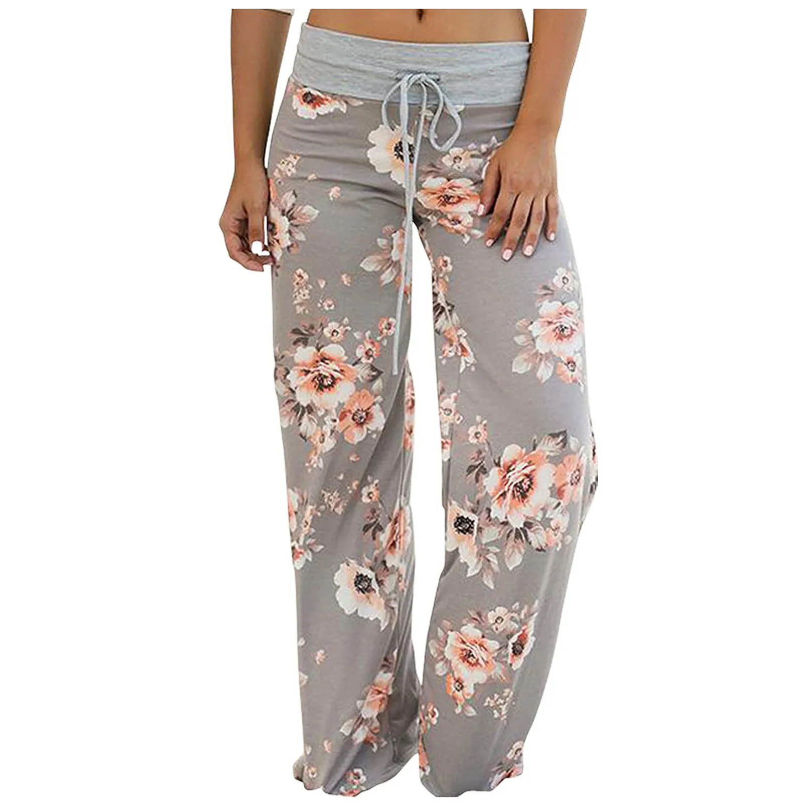 Штаны женские, с цветочным принтом, на завязках, с высокой талией