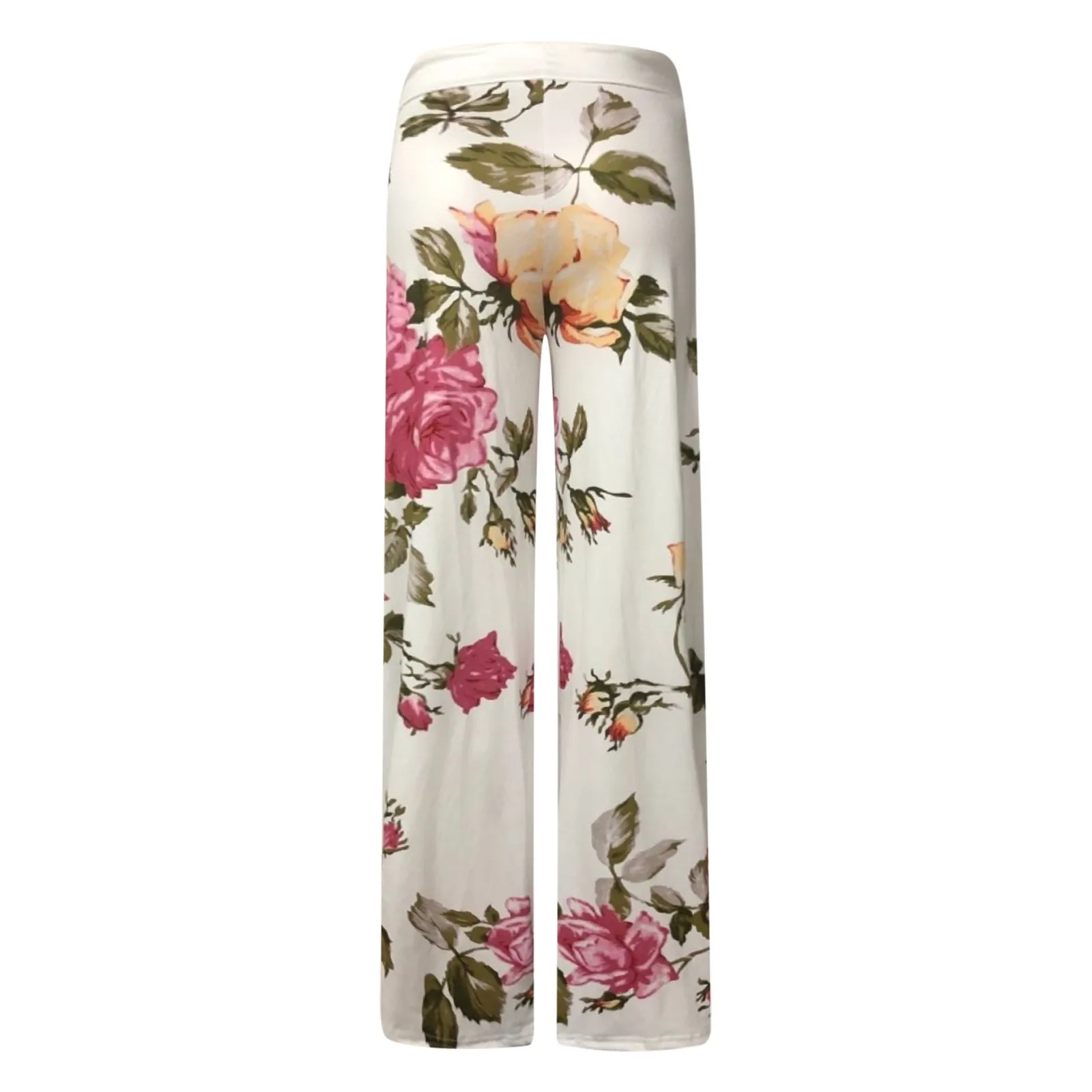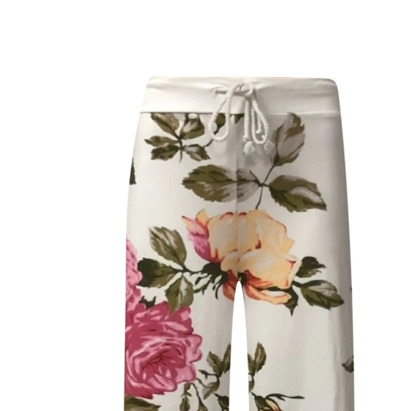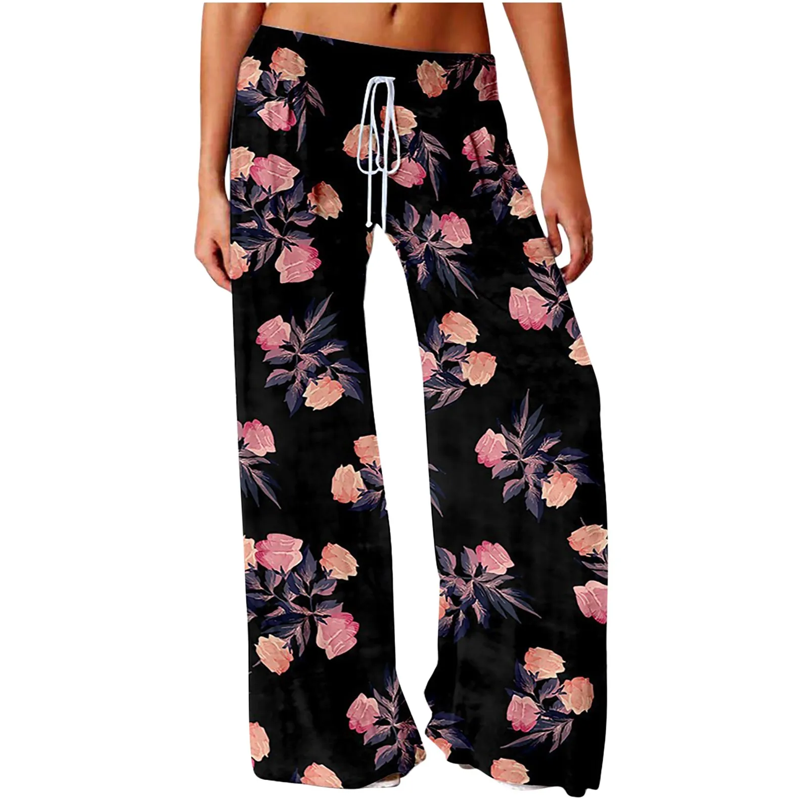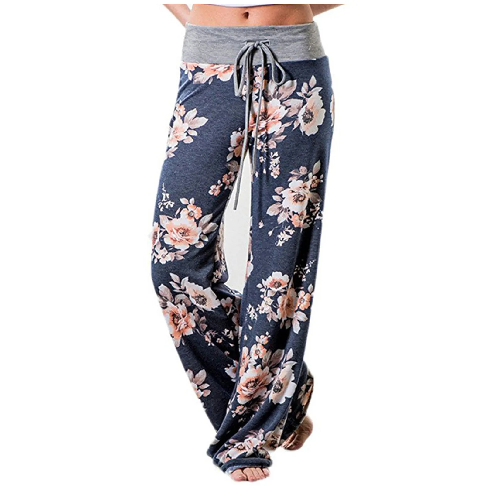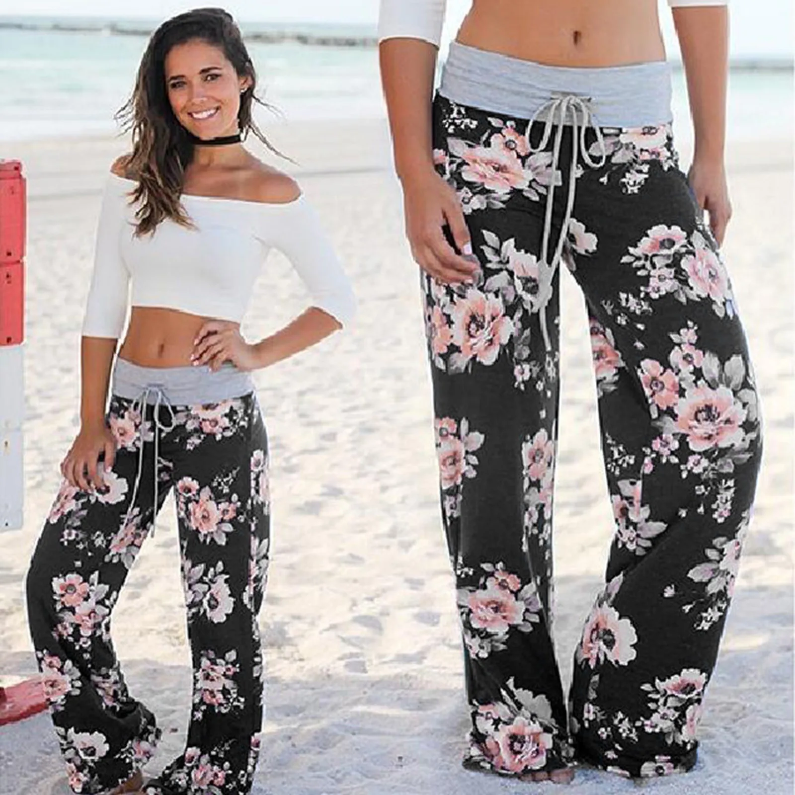 Штаны женские, с цветочным принтом, на завязках, с высокой талией