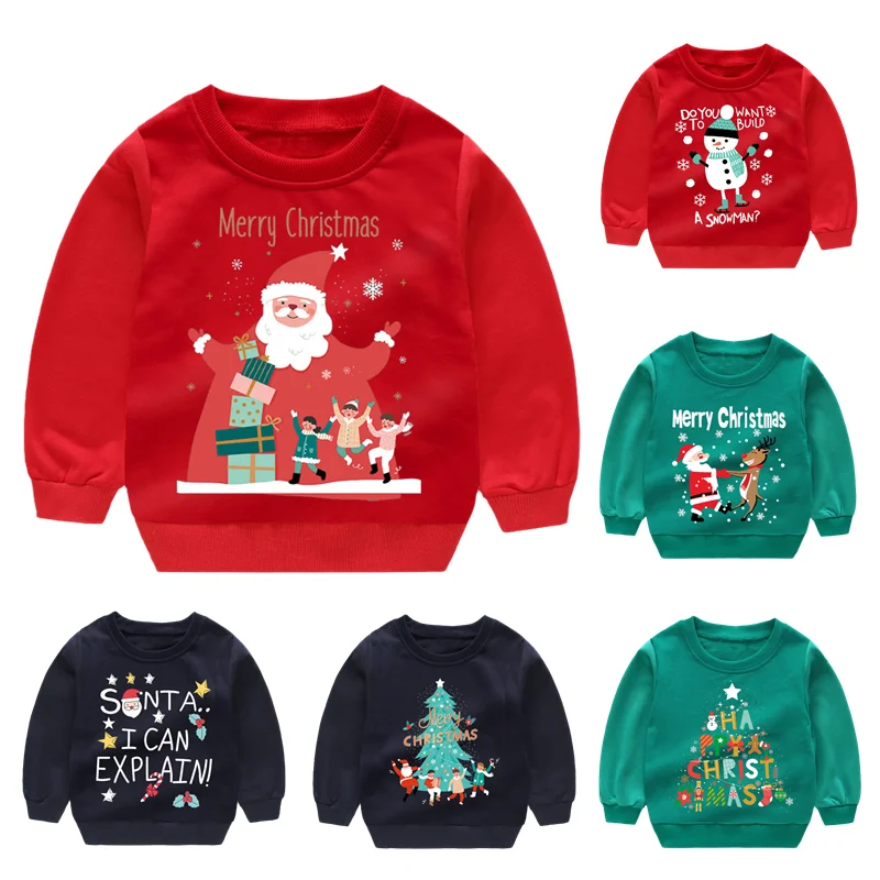 Свитшот с круглым вырезом для мальчиков и девочек, Рождественский к...