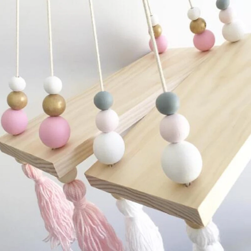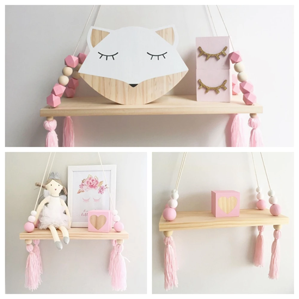 Деревянная настенная полка, Подвесные плавающие полки, цветные настенные украшения для спальни, для детской комнаты, комнаты для девочек, домашний декор